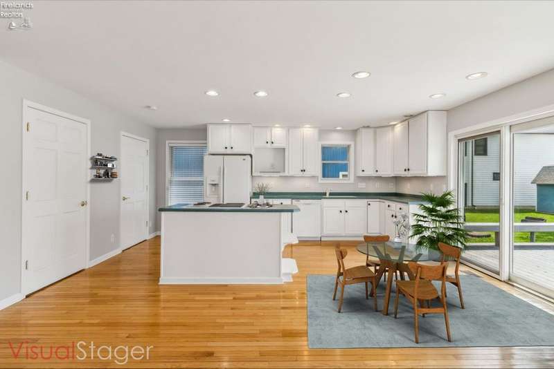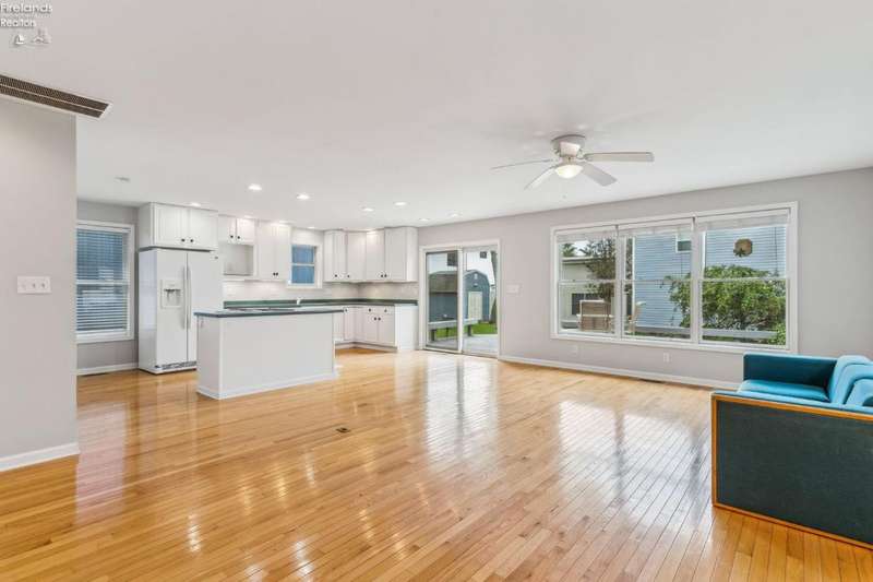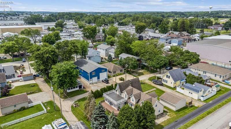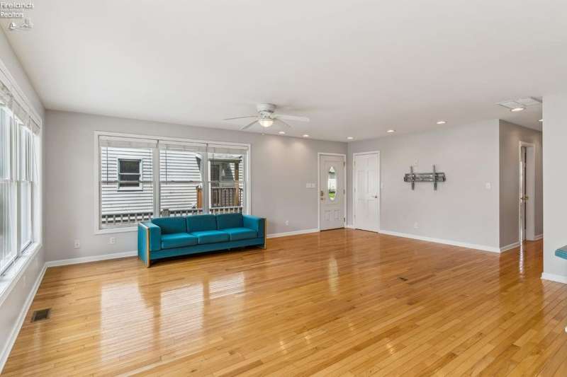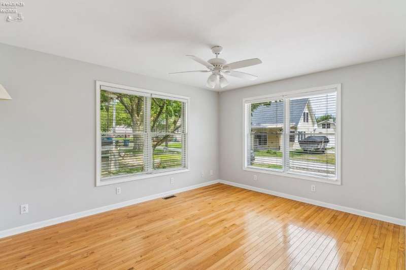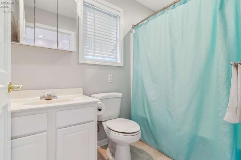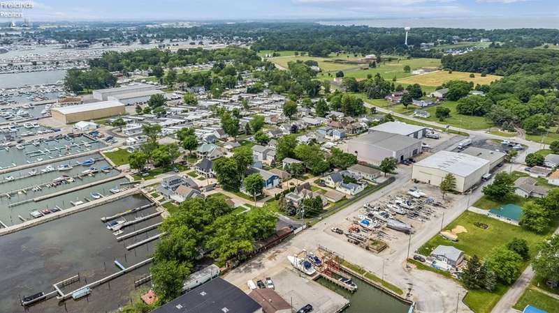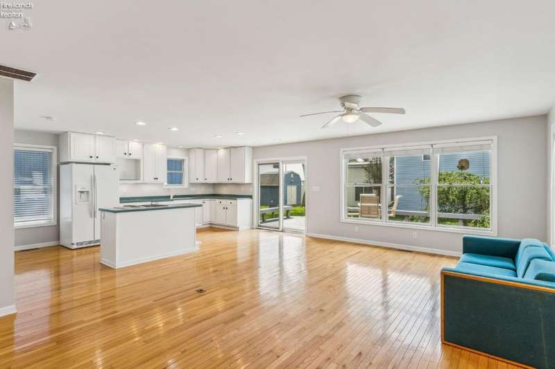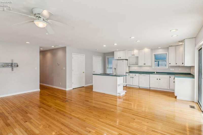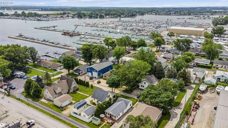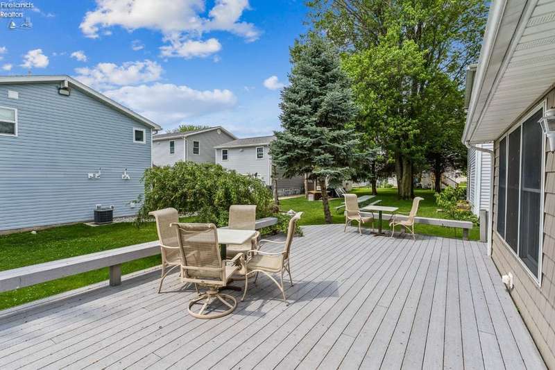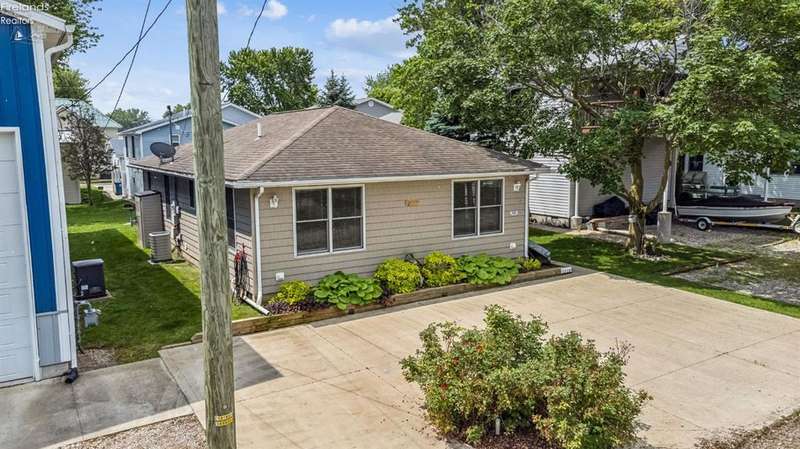 AMAZING LOCATION on Catawba Island, West Harbor, walk down to waterfront. 30ft dock slip included, 2 bedrooms, 2 full baths ranch style Catawba Island Retreat perfect for full or part-time living! Large great room opens to kitchen and dining area with loads of natural sunlight, patio door leads to composite deck w/bench seating, overlooking the green space. Kitchen boasts an island, appliances convey - Jennair slide in range, refrigerator, tons of cabinet space, recessed lighting. Hardwood floors lead down the hall to the spacious bedrooms and baths. Primary bedroom has private ensuite bath, walk-in closet. Second bedroom w/access to hall bath, nice windows. Oversized front concrete driveway for parking. Shaker vinyl siding - low maintenance. Central air, public water/public sewer, gas furnace, stackable washer and dryer off kitchen. Hoa fee is only $100/year! Close proximity to Vacationland favorites.