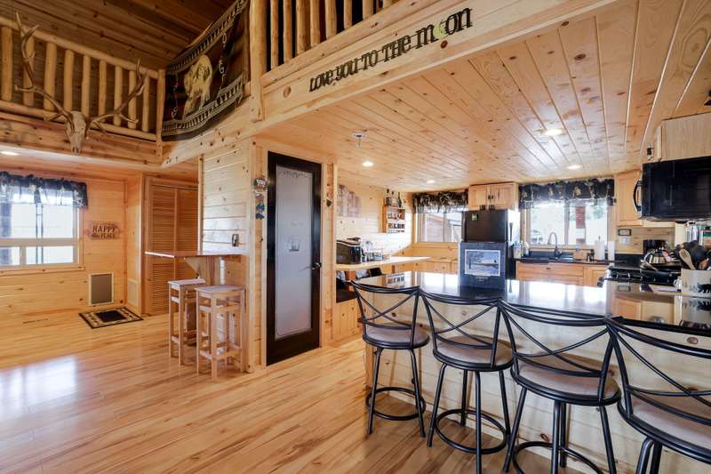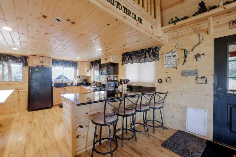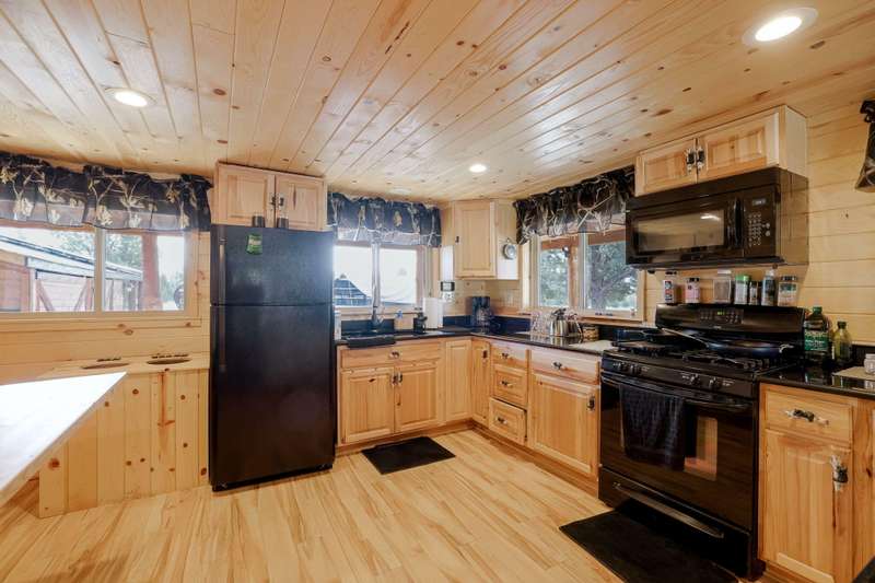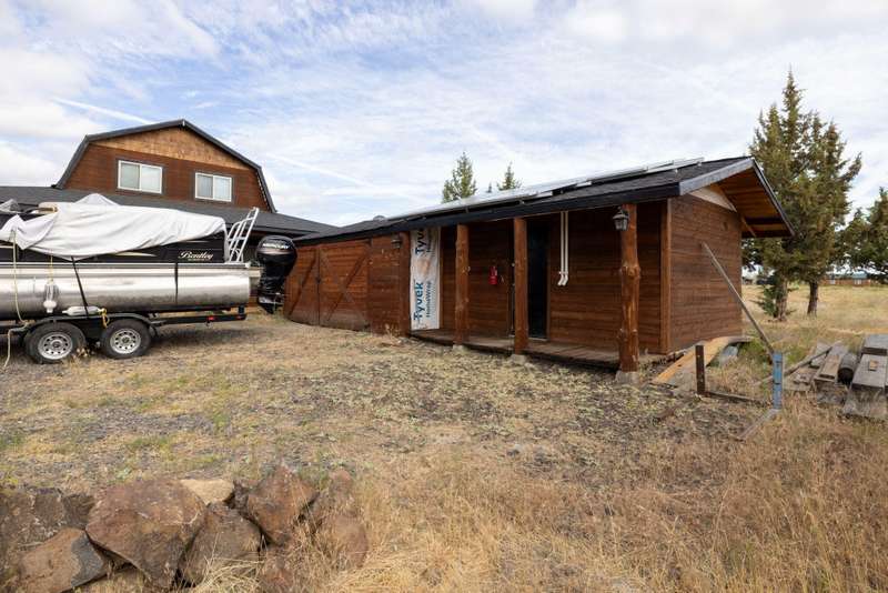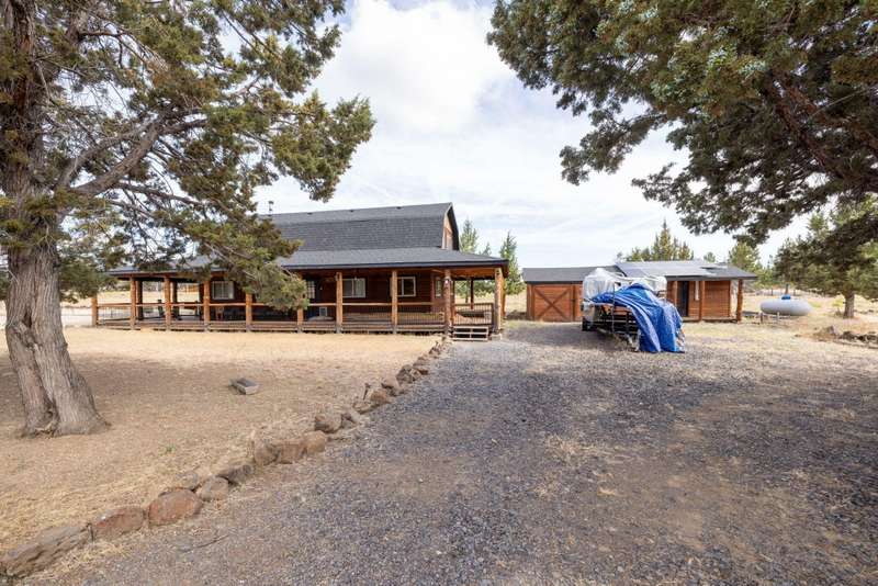 Beautiful Remodeled Cabin. Welcome to this stunning 3-bedroom, 2-bathroom cabin nestled on nearly 4.97 acres in the highly desirable Off Grid Gated Community. 3 Rivers Rec Subdivision. Surrounded by natural beauty and boasting breathtaking Cascade Mountain views, this fully remodeled home blends modern comforts with rustic charm. The interior features fully remodeled with laminate flooring throughout. Spacious living room with cozy wood-burning fireplace. Modern kitchen featuring granite countertops, breakfast bar, and a propane gas range/oven. Pine wood accents bring a warm, rustic feel throughout the home. PEX plumbing and propane forced air furnace for year-round comfort. 48-volt solar system with newer batteries. Brand new 10,000-watt Generac generator. 2,500-gallon cistern. Exterior Highlights: Expansive covered wrap-around deck — perfect for outdoor relaxation and entertaining. Above-ground pool with deck. 18x18 storage shed.