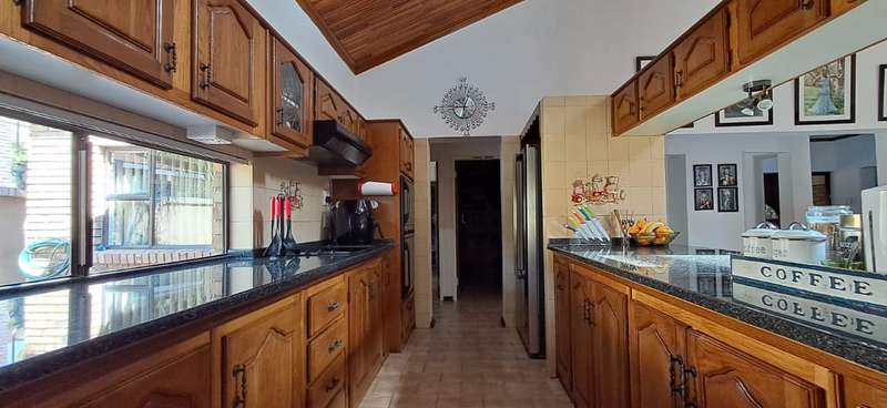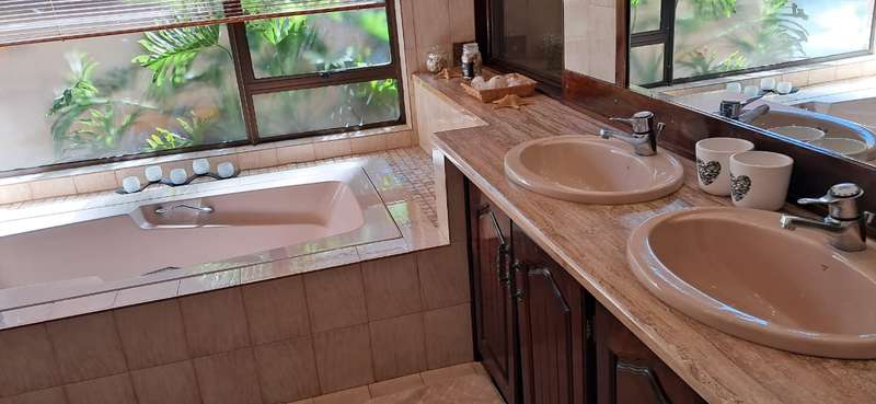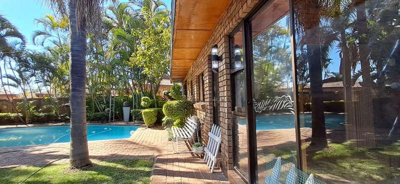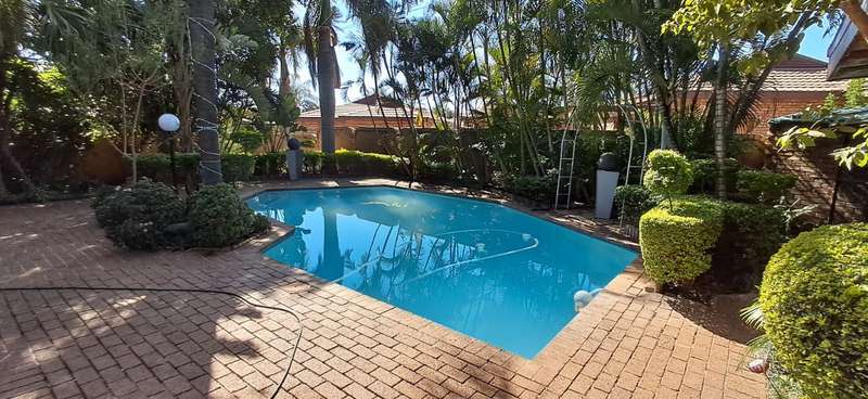 A luxurious and spacious 5 bedrooms house with built-in cupboards in all the rooms, 4 bathrooms, two en-suite, a kitchen perfect for chefs, and plenty of living spaces for relaxation and entertainment. A well maintained garden, swimming pool and borehole. 2 x Water tanks for sustainability! One for the garden and one for house hold use. Double garage and 2 x carports as well as servants room and bathroom. The property is well located near shopping facilities and other amenities and has easy access to all major routes.