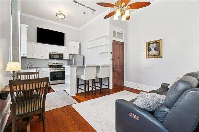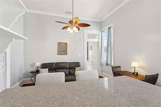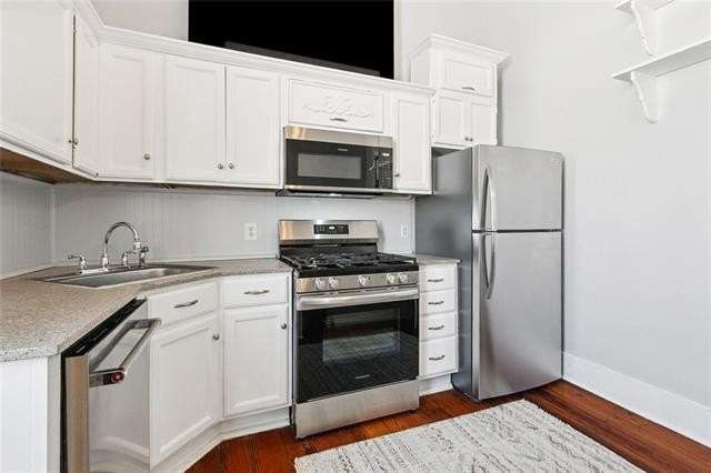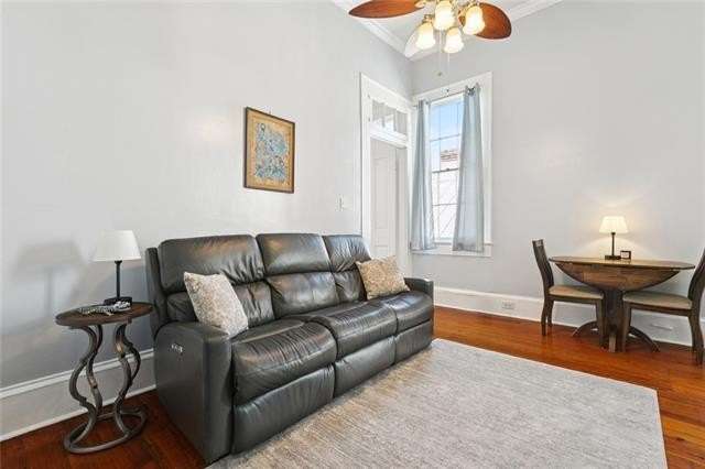 This charming 1-bedroom condo with a sunroom invites you to slow down and savor the beauty of New Orleans living. Sunlight pours through tall windows, dancing across the rich hardwood floors and filling every corner with warmth. High ceilings create a sense of openness, while the bedroom offers cozy comfort and smart storage with dual closets and overhead space. The kitchen is designed for both convenience and connection—new stainless steel appliances, plenty of cabinetry, and a bar counter where friends can gather while you cook and a new HVAC system ensures your comfort. Step outside to a lush shared patio with cabana seating for relaxing or entertaining. Just a short stroll to Magazine Street’s shops, cafés, and nightlife, and moments from Coliseum Square Park, this home blends comfort, character, and an unbeatable location.