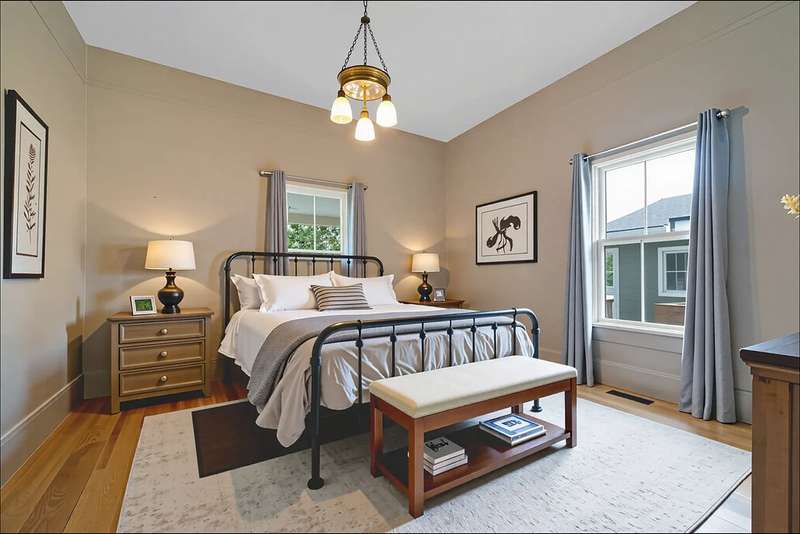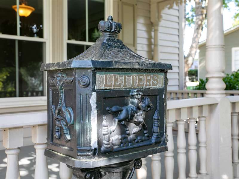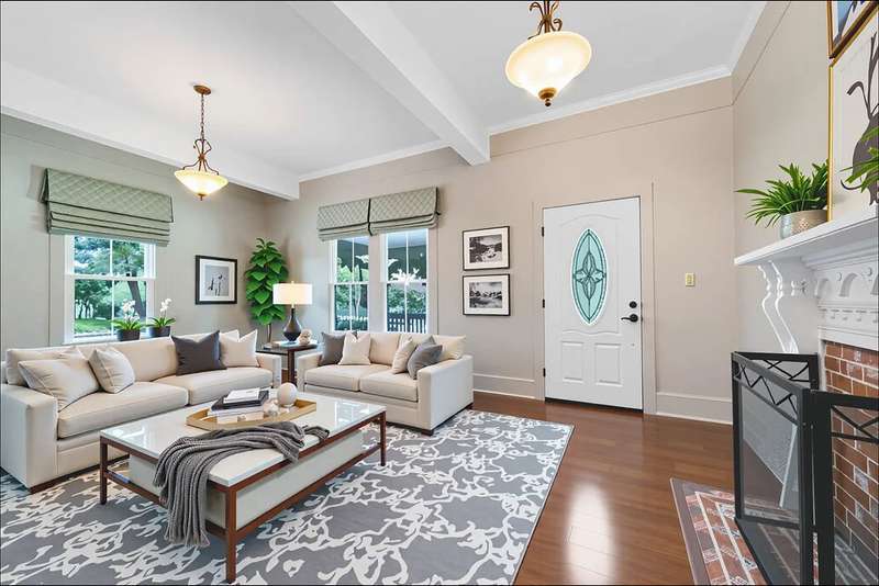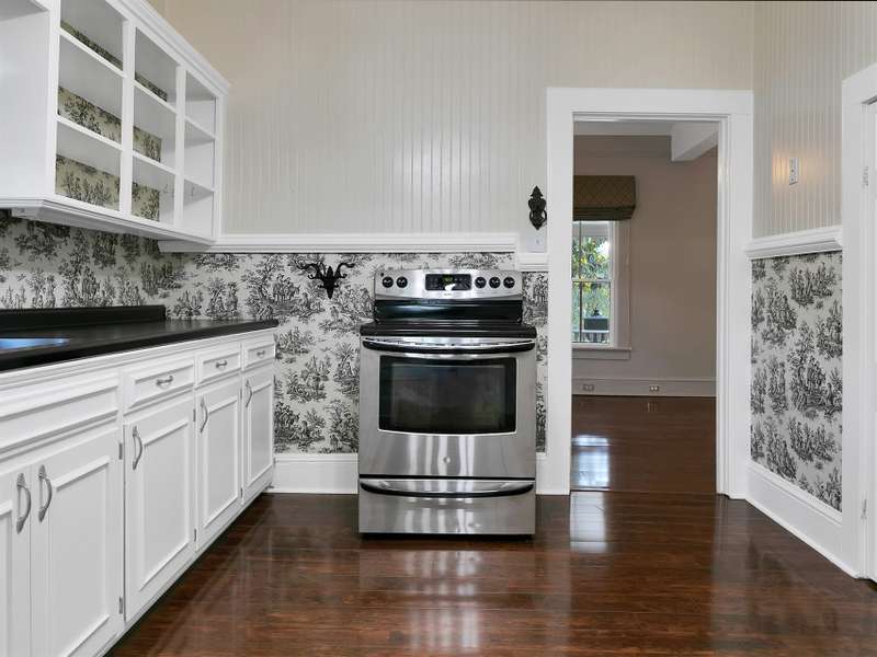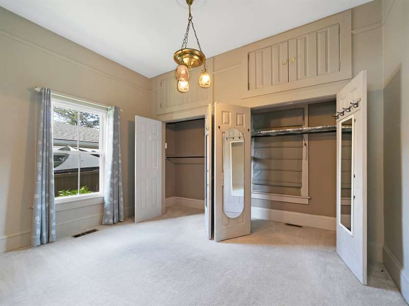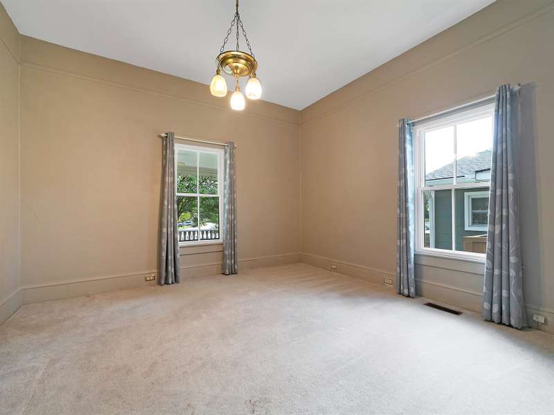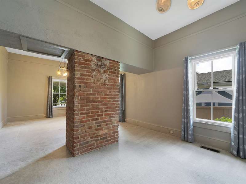 Charming Historic Home, 2BR/2BA Circa 1900. Step into history with this beautifully preserved 1900 built home that blends old-world charm with modern comfort. From the moment you arrive you'll be captivated by the beautiful front yard enclosed by a fleur de lis wrought iron fence. Framed by mature trees shading the front porch you are welcomed with character. The generously wide front porch, framed by classic columns and period details, this space is ideal for relaxing in a rocking chair. The porch's elevated setting gives you a peaceful, private view of the front yard and adds to the home's striking curb appeal. Inside, period-style lighting casts a warm glow throughout the home, highlighting the architectural charm, with soaring 10+ foot ceilings, all lovingly maintained. The cozy eat-in kitchen offers a delightful space for casual dining while original design elements create a sense of nostalgia and elegance. The primary bedroom is on the main level. Large, spacious suite which includes a separate sitting area or home office space. The exposed brick chimney is a beautiful architectural gem that adds charm to the space. Features 2 full baths, one on each level, both thoughtfully designed. Upstairs is a cozy bedroom with an en suite full bathroom and an additional mini split HVAC system. The home provides lots of storage space with extra built ins throughout. Laundry room on the main level. Rear entry from the brick paved parking area through a porch perfect for a drop zone. Enjoy the spacious rear yard with mature landscaping and a rear entry from the brick driveway. Come and see all this home has to offer!