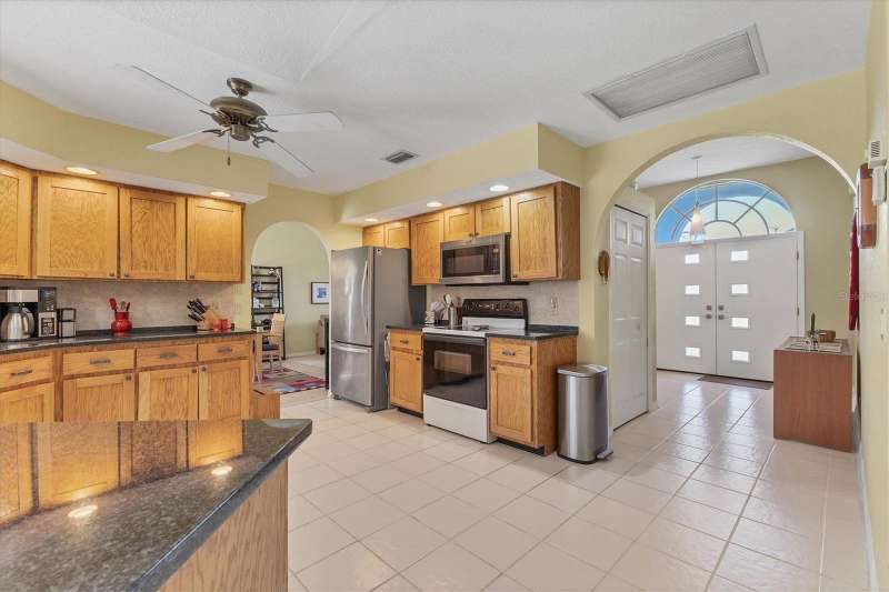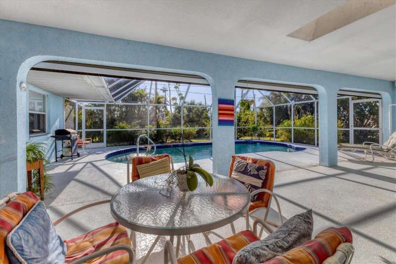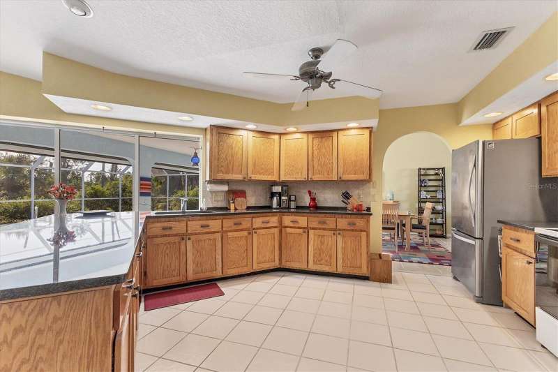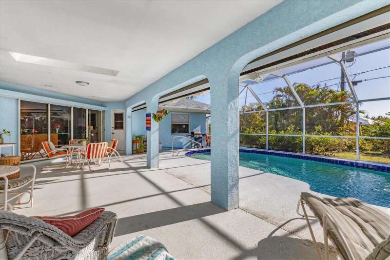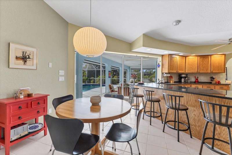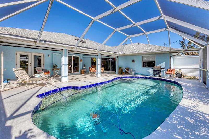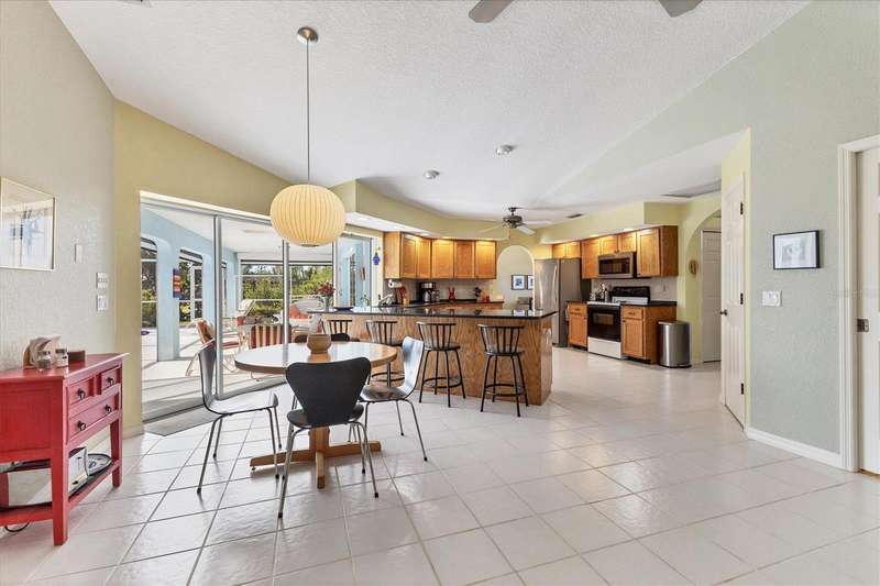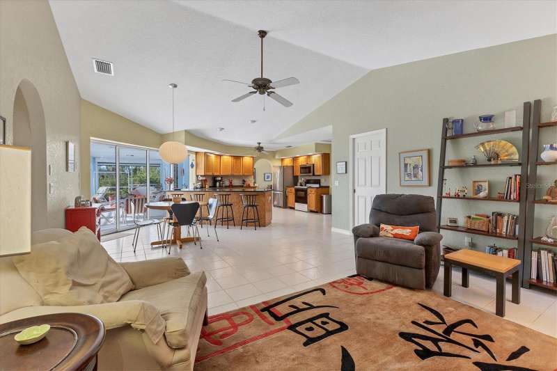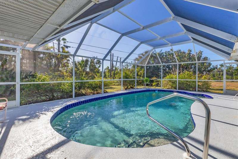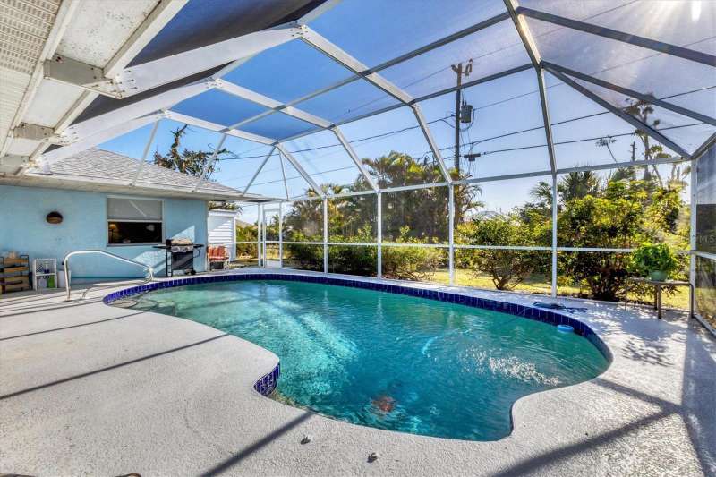 TWO LOTS ** PRIVATE WOODED VIEW (of your lot) ** NO FLOOD ZONE ** SCREENED IN POOL ** NO HOA or RESTRICTIONS ** LIVING ROOM and LARGE GREAT ROOM ** BIG COVERED PATIO ** WALK IN CLOSETS ** SHED ** ELECTRIC ROLL DOWN HURRICANE SHUTTERS in the BACK ** CLEAN LARGE & READY FOR YOU! Located in the popular beach town of ENGLEWOOD, FL, this SPACIOUS home is waiting for you! There’s plenty of elbow room in this 2300 sq foot single family home, with BOTH a LIVING room AND a FAMILY ROOM, LARGE KITCHEN with EXTENDED stone-top BREAKFAST BAR and DINETTE area that leads to the 13’ x 22’ covered LANAI and POOL area. There’s also plenty of room on the property because there are TWO LOTS included in this sale; the lot behind the home is part of this parcel! You can keep it for privacy or sell that off if you wish. This home offers the luxury of the popular “SPLIT FLOOR PLAN”, with the spacious primary suite on one side of the home and the 2 additional bedrooms and full bathroom on the opposite side. The primary suite, dining room, dinette/kitchen area and second bathroom all lead out to the pool area with a full screen enclosure. The sliding glass door in the kitchen area open the entire wall to the pool! That area also enjoys the start of a vaulted ceiling which extends into the family room area. Every room is expansive in this home, from the interior laundry room (with cabinets, a butler closet and utility sink) to the walk-in closets. It’s so open and bright that you don’t even need to turn a light on! The roof (2023), HVAC (2024), front door and electric roll down hurricane shutters along the lanai are all 2 years old. And did we mention X FLOOD ZONE? That means no flood insurance is required so you don’t have that extra expense. This home is not in a deed-restricted community, so you have no additional association fees, and you ARE allowed to store things in your shed (included). Located in a beachgoer, boater and sun-lovers’ community, close to the beaches, boat ramps, golf courses, medical offices, and shopping. Come enjoy paradise!