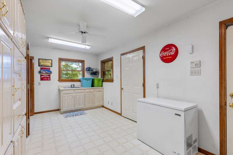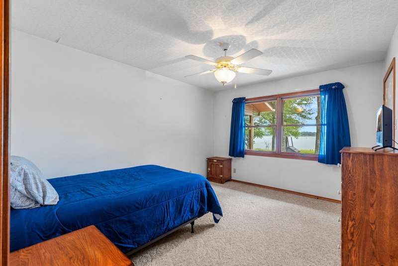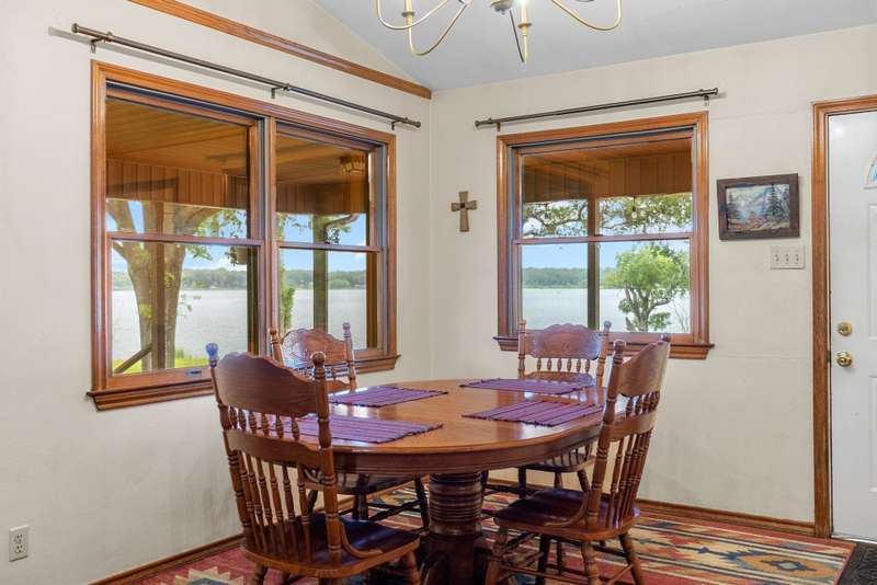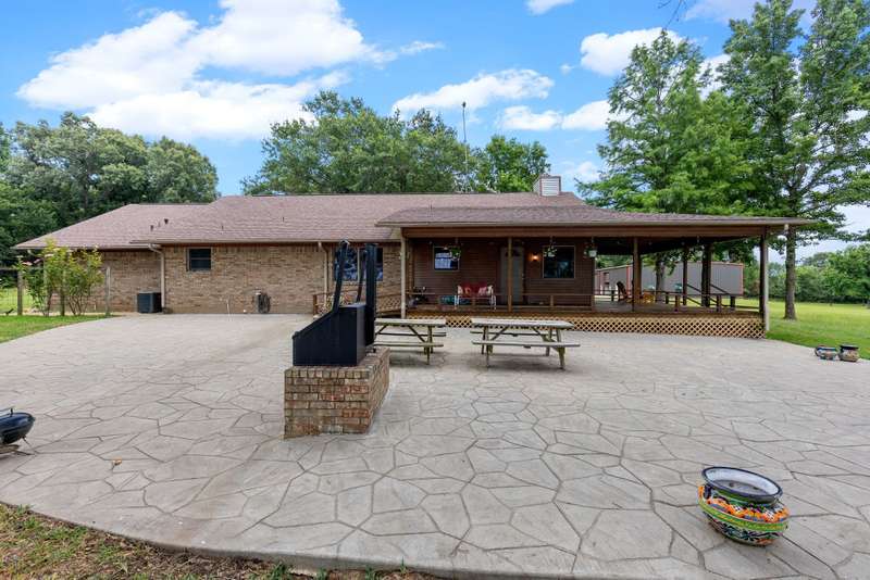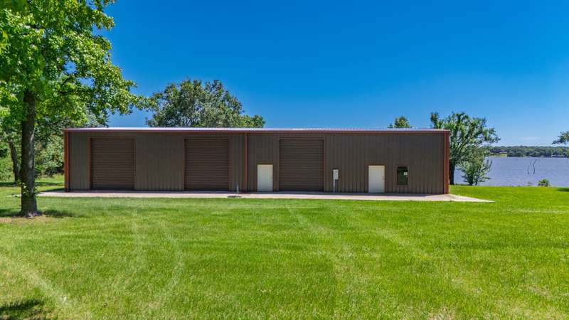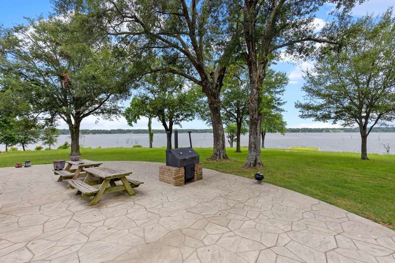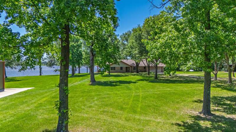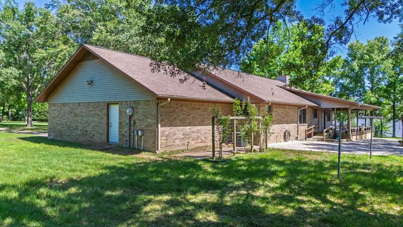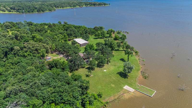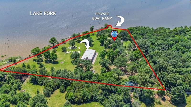 Nestled on a breathtaking 6.14 acre peninsula with approximately 770 feet of pristine shoreline on Lake Fork, this exceptional property is a fishermans dream and a nature lovers paradise. In addition to the 3+ deeded acres, enjoy exclusive use of approximately 3 acres of SRA leaseback land, offering ample space for outdoor activities. This rare lakefront gem combines serene beauty, modern functionality with private boat launch and dock, and endless entertainment possibilities, making it the perfect retreat for lake living. The solid, single-story brick home is designed for comfort featuring a spacious open-concept living, kitchen, and dining area anchored by a cozy fireplace - stunning lake views, while the expansive wrap-around deck extends the living space outdoors. The 2,800 sq. ft. patio, shaded by a canopy of mature trees, is an entertainers dream, complete with built-in BBQ grill for hosting family and friends while enjoying the best vistas Lake Fork has to offer. For hobbyists, craftsmen, or those needing substantial workspace, the recently completed 5,000 sq. ft. workshop is a standout feature. Equipped with four 14-ft high bay doors, 400-amp electrical service, and pre-installed plumbing and electric for a future office or guest quarters, this versatile space is ready for your visionwhether its a dream garage, studio, or additional living area. The workshops robust design ensures it meets the needs of professionals and enthusiasts alike. Surrounded by year-round natural beauty, the property is a haven for wildlife, with deer freely roaming the grounds, adding to the serene ambiance. Whether youre fishing, entertaining, or simply soaking in the tranquility of lakefront living, this property delivers an unmatched lifestyle. Perfect for those seeking a private retreat with room for all their toys and dreams, this Lake Fork masterpiece is a rare find. Schedule your private tour today to experience this extraordinary property firsthand!