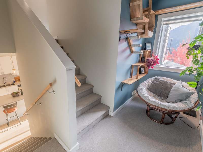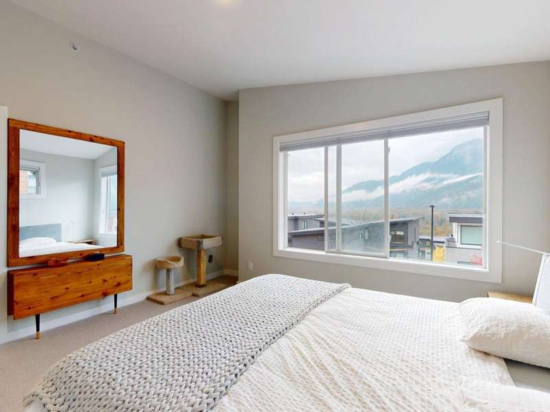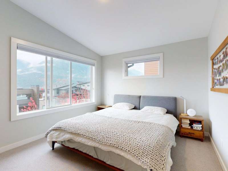 Thoughtfully designed for adventure and everyday living, this 1/2 duplex is your perfect Squamish home base. Take in sweeping views of the Chief and coastal mountains from your deck, or unwind around the gas fire-table in your private, fully fenced backyard. The main floor is filled with natural light and the open kitchen flows effortlessly into living spaces — ideal for entertaining. Upstairs features three spacious bedrooms, including the primary ensuite complete with heated floors and a swoon-worthy soaking tub. A large two-car garage provides ample storage for all your gear, plus additional driveway parking. The home has a heat pump for energy efficient heating and cooling. World-class trails and the Montessori School are just steps from your door.