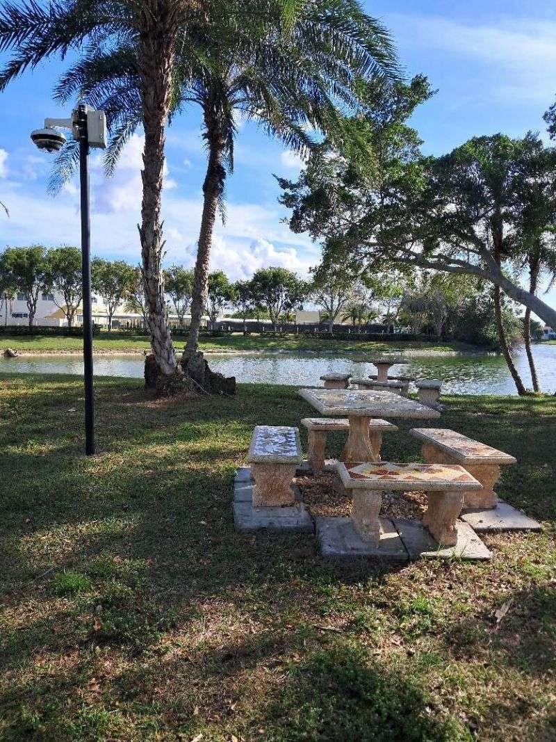 Charming FIRST FLOOR condo with NO CARPET at Century Village! CV is a quiet 55+ gated community. 1 & 1/2 bathrooms. Windsor P is a prime location near the main entrance on Okeechobee Blvd. Offered furnished or unfurnished. Condo owner has just completed upgrades to condo; new vinyl floors, new vanities & freshly painted throughout! Professionally landscaped! Walking distance to the library, Dunkin Donuts, hair salon, and banks! Just minutes from the beaches! This condo features a lush tropical BBQ seating area for your enjoyment and relaxation! Pick from your own avocado & mango trees! Clubhouse has its own movie theater, Las Vegas style shows, a variety of classes, over 20 pools, sauna, health club, sailing, trash removal, tennis & courtesy bus! Dont miss this GROUND FLOOR opportunity.