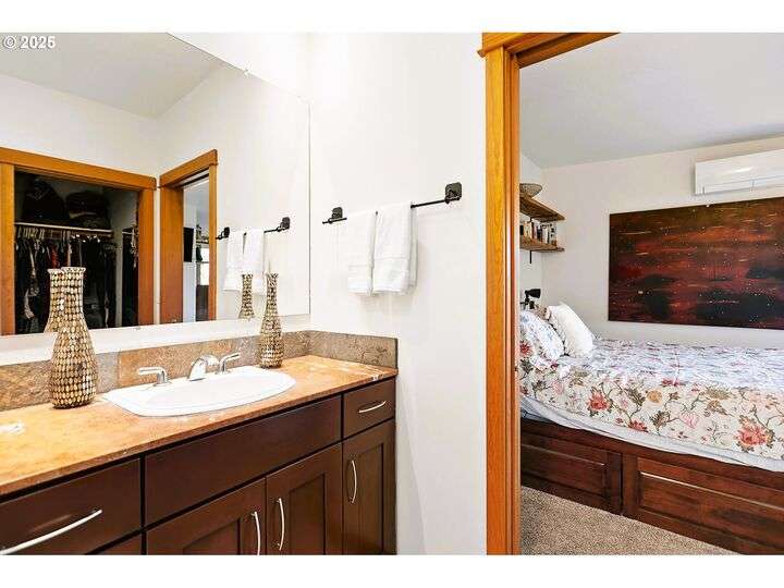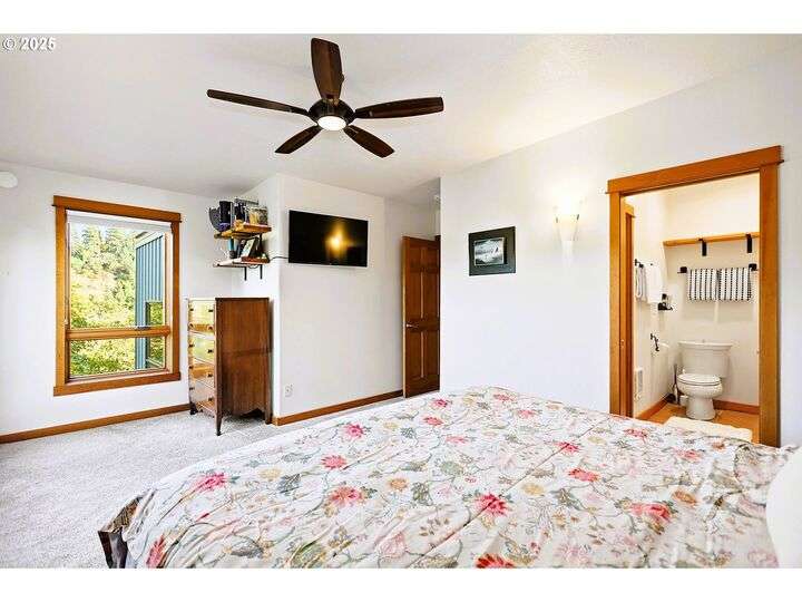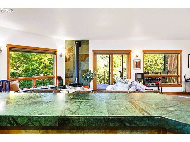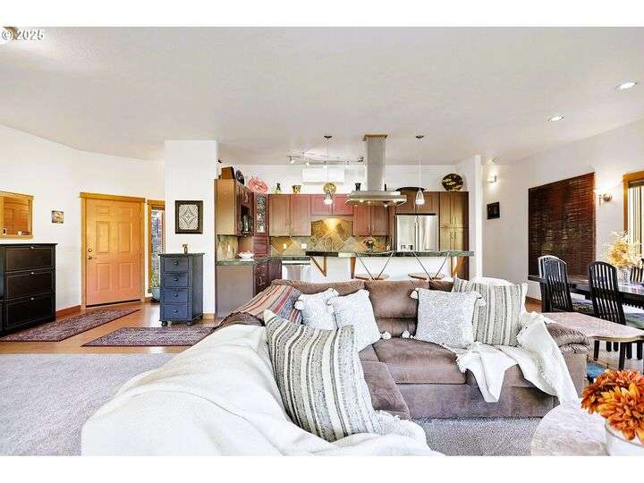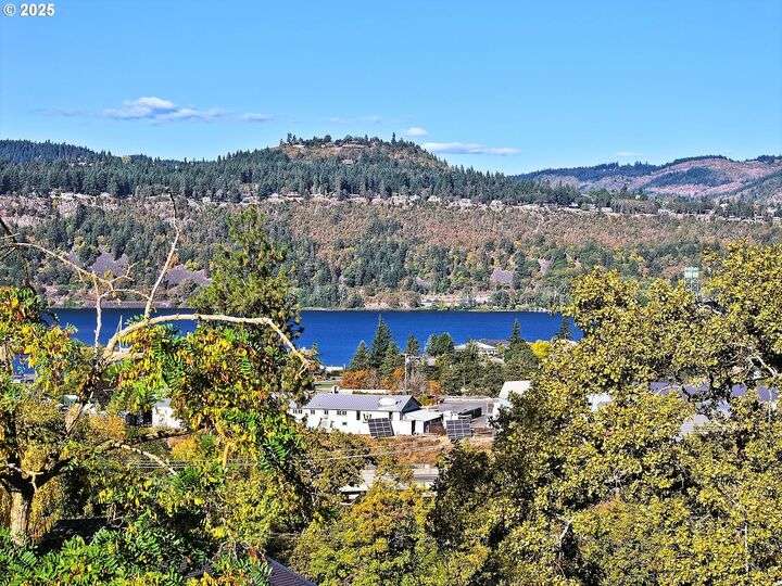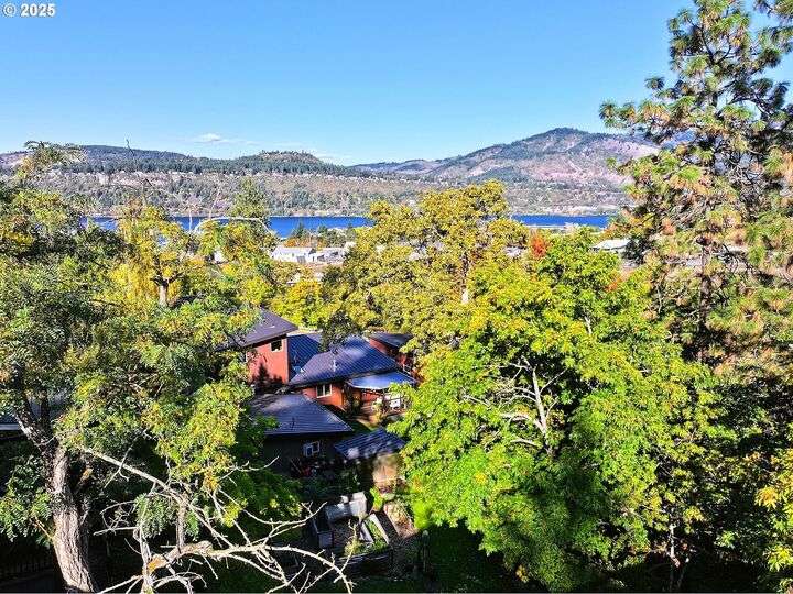 Turnkey Downtown Hood River Condo with Sweeping Columbia River & Hood River Views-Ideally located just minutes from downtown Hood River and sits just below the east head of the 4.5 mile Indian Creek Trail System that runs to Westside Hood River.Experience the best of Gorge living in this stylish 2 bed, 2 bath condo offering breathtaking year-round views and effortless comfort. Designed with an open-light-filled great room, this home features walls of windows that showcase every season and create a seamless connection to the outdoors. Step onto the incredible covered deck—an extension of the great room—where you’ll feel like you’re perched above the treetops taking in the stunning scenery all around.Perfect for entertaining, the expansive great room highlights engineered bamboo flooring, warm slate accents with a custom built-in bench, and a cozy gas stove with slate surround for those crisp winter days. The chef’s kitchen is a social delight having an expansive cook island with a 4-burner gas cooktop and convection oven, SS range hood and a spacious eating bar. There is also a new SS refrigerator & dishwasher and a great double sink for all of your prep work. The bedrooms are perfectly positioned for privacy, being just steps up from the back of the great room—offering a quiet retreat with easy access to the heart of the home. The serene primary suite offers beautiful natural light and captivating views and an attached bath with marble-tiled vanity with built-in mirrored cabinet, tiled floors and walk-in closet. The guest bedroom sits just down the hall next to a full bath featuring marble counters, tiled floors and laundry closet with stacked washer/dryer. An attached one-car garage with automatic opener provides convenient parking or great storage for all of your gorge gear. Driveway parking and off-street parking is also available. Whether full-time living or a weekend getaway, this is the perfect Hood River retreat. Shown by appointment only.