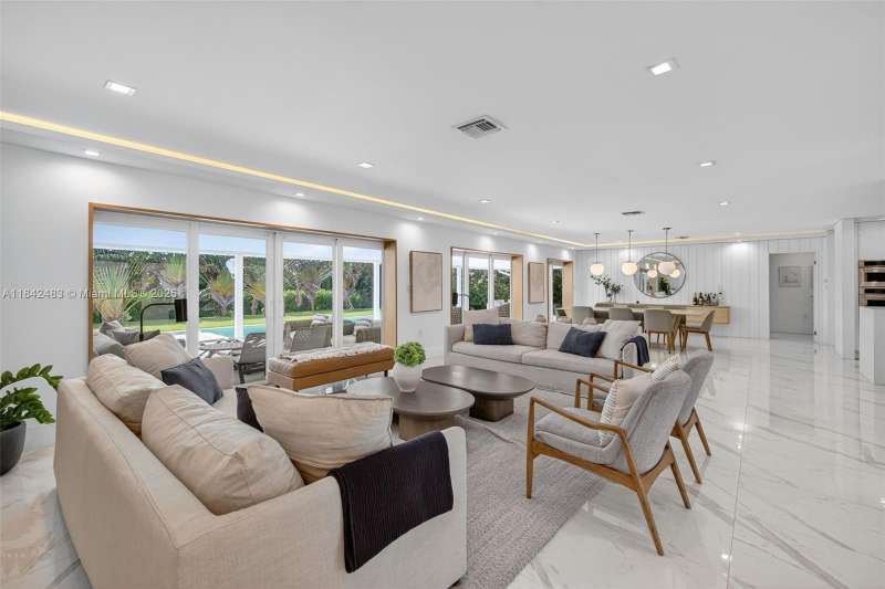 A 100% luxuriously renovated golf course home overlooking Shell Bay Golf and Country Club. A chic, open concept living with a bright kitchen and a huge island with seating for 6, opens to a spacious living and dining area with cove lighting wrapping around the entire room. Elegant foyer with storage cabinetry w/ luxurious wood panels. A split floor plan of 5 bedrooms plus 4.5 bathrooms, custom closets throughout, finest quality interior doors with hidden hinges. Gentle glide, impact sliders open to a 600 SF covered entertaining terrace. Backing on to the exclusive, newly opened, Auberge Resort, Shell Bay Golf & Country Club. Move-in ready. Residence available fully furnished. Minutes to Aventura, Bal Harbor and FLL. Diplomat Parkway is southeast Broward's HAUTE' new area!