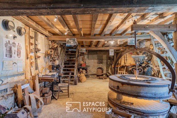 A charming wooden staircase leads up to the first floor, with its four bedrooms, two shower rooms, a dressing area and a vast, light-filled room, the use of which will be limited only by the imagination of its future owners. Another wing of the building houses all the old mill mechanisms, carefully preserved as evidence of a past rich in history.