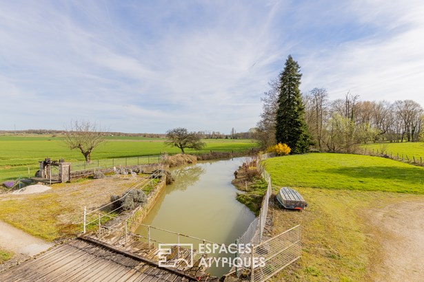 Situated close to the famous Lac du Der, this authentic mill, the first traces of which date back to the 11th century, spans 316 m2 on a plot of 80 ares. A treasure trove of history nestled in a bucolic setting, with its typical Champagne half-timbering, exposed beams, old-fashioned fireplace and old paddle wheel, it exudes a warm atmosphere. This authentic setting has been perfectly respected by its owners, who have also equipped it with all the comforts of a contemporary home.
