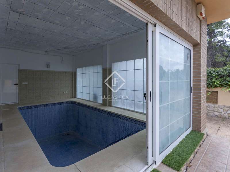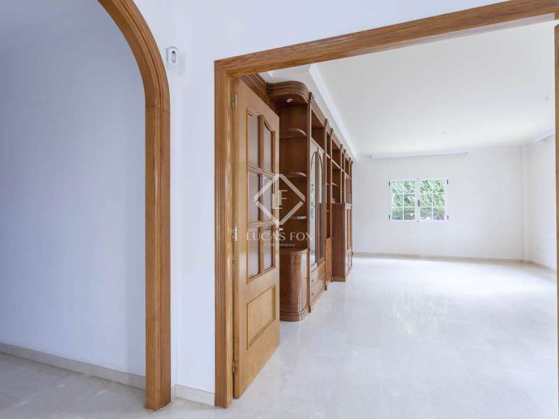 Lucas Fox presents this 400 m² house built on one floor with an exposed brick façade. The day area has two living rooms with its dining area, one of them with boiserie and the other connected to the kitchen. The large kitchen is fully equipped and has access to a large pantry. The night area has two double bedrooms, two single bedrooms, the master bedroom with its private bathroom and dressing room, and two complete bathrooms. In addition, it has a glass-enclosed indoor pool that you can enjoy in summer and winter. It has a shower and a direct door to the house and exit to the solarium area on the plot. Outside we find fruit trees, palm trees, a small orchard, a specific area for dogs and a wooden house, all illuminated by foot and floor lamps. Among its features, it includes solid mobila wood interior carpentry, 14 built-in wardrobes covered and lined with solid mobila wood, white lacquered aluminum exterior carpentry, with windows with Climalit glass and mosquito net. It also has an armored door, alarm, underfloor heating throughout the house, including kitchen and bathrooms, powered by city gas and air conditioning in the master bedroom and the main living room. The garage has capacity for two cars. The price includes three shares of the Cooperativa de Aguas La Cañada-El Plantío. Get in touch for more information.