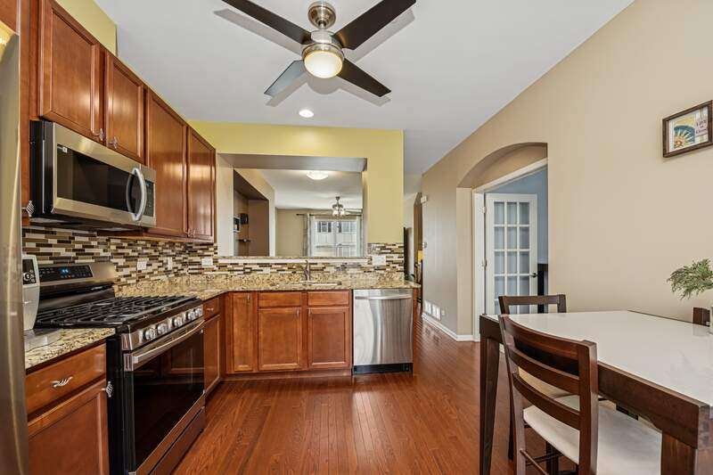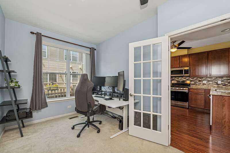 Now available in desirable Lexington Park! This meticulously cared for, move-in ready, 3-story townhome is sleek, spacious, and boasts updates from top to bottom. This home is the epitome of stress-free living! The main level is a homeowner's dream, featuring beautiful hardwood floors, an updated powder room, and a versatile flex space with french doors that's perfect for a home office, den, or nursery. The open living and dining area flows seamlessly into the eat-in kitchen, a chef's dream which boasts granite countertops, tile backsplash, a breakfast bar, and all-new appliances, including a fridge (2022), disposal (2024), and a new dishwasher, microwave, and gas range with a built-in air fryer (2025). Upstairs, you'll find large primary and second bedrooms, both with their own walk-in closet and private en suite bathroom featuring marble floors and granite countertops. The convenience continues with a dedicated laundry area on this floor, complete with a new washer and dryer from 2022. The finished lower level provides even more flexible space-perfect for a den, office, gym, or recreation area. Even more, this home is as efficient as it is beautiful. A smart thermostat with sensors ensures perfect comfort and energy savings. Major updates include a new water heater (2021), a new furnace (2022), and new A/C (2022), and peace of mind comes standard with a new garage door and motor (2022). Close to the train, shops, dining, schools, trails, grocery, and more, you do not want to miss your chance to see this incredible property-it won't last long!