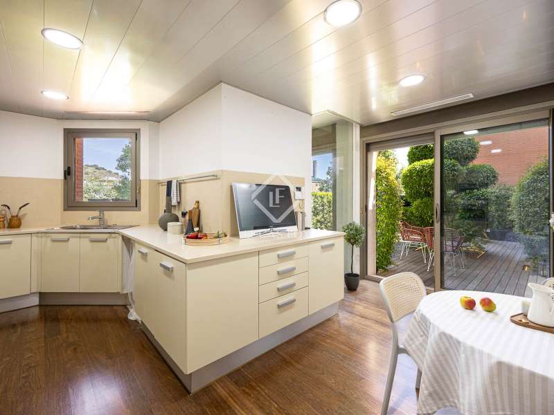 Impressive five-storey house in the exclusive Torre Vilana complex, located at the foot of Collserola. This spectacular house combines comfort, privacy and nature with unbeatable views. It is the ideal place to enjoy family life, thanks to a layout that includes a large dining room living room with access to the garden, four bedrooms (two of them en suite) and four bathrooms. In addition, both the terrace and the garden are private, perfect for moments of relaxation and outdoor entertainment. The property includes a garage with capacity for vehicles, which ensures a comfortable parking solution. We also have two multipurpose spaces that offer the possibility of creating different environments according to the needs of each family. The complex has 17,000 m² of landscaped areas , maximising the feeling of spaciousness and connection with nature. Its residents can enjoy various facilities, such as swimming pools, a paddle tennis court and a children's playground, as well as permanent surveillance for greater security. Without a doubt, this is a home that has everything you need to live in luxury and tranquility in one of the best areas of the city. As for the finishes, the property has wooden floors, Technal aluminum enclosures, osmosis system, elevator to all floors, garden irrigation system, gas heating and ducted air conditioning.