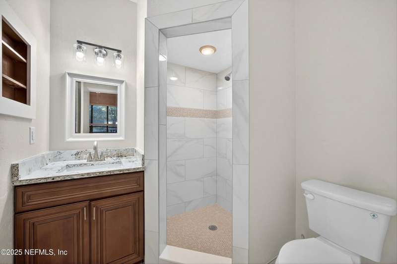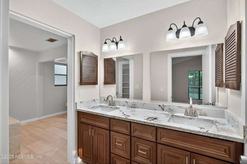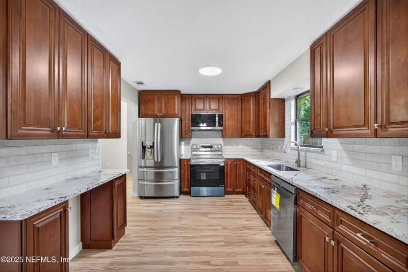 Completely Renovated Mid-Century Modern! 4-bedroom, 3-bathroom home offering over 2,000 square feet of stylish comfort in a desirable Orange Park neighborhood. Step inside to discover a stunning chef's kitchen featuring rich wood cabinetry, quartz countertops, and new stainless-steel appliances, designed for both everyday living and effortless entertaining. The home's thoughtful updates continue with remodeled bathrooms, designer vanities, modern lighting, and luxury flooring that flows seamlessly throughout. Freshly painted inside and out, every detail has been curated for a move-in-ready lifestyle. The spacious owner's suite is a private retreat, complete with a large walk-in closet, spa-inspired bathroom, jetted soaking tub, and separate enclosed shower. Blending sophistication with comfort, this home offers the perfect balance of modern design and timeless appeal - all set within one of Orange Park's most sought-after areas.