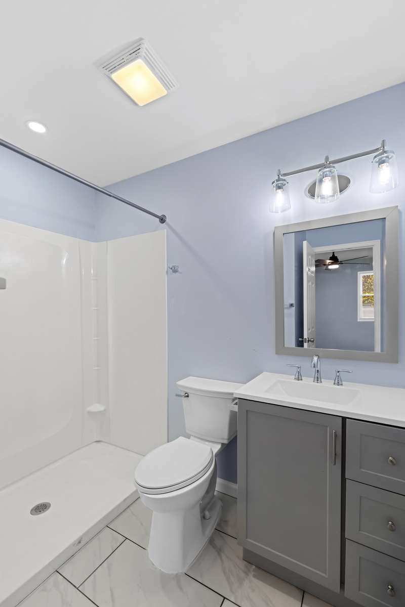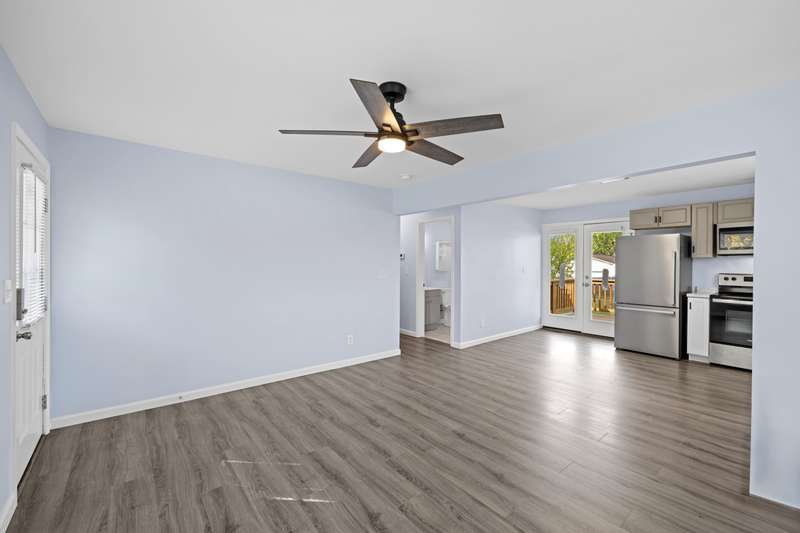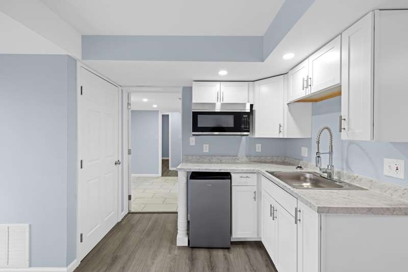 Price adjustment! Completely renovated and move-in ready, this stunning 5 bedroom, 4 bathroom homes with charming blue siding offers the perfect lend of style, comfort, and functionality. The main floor features a bright, open-concept kitchen and living area with elegant finishes and French doors that open onto a spacious deck overlooking the fenced-in back yard-- ideal for entertaining or kicking-back to relax. Three bedrooms and two bathrooms on the main floor with two bedrooms, two bathrooms, laundry room, kitchenette, and large family room are on the lower level with two separate entry doors from the back yard, with plenty of parking for multi-generational living. Easy 25 minute commute to Charlottesville, VA and Shenandoah Valley Regional Airport.