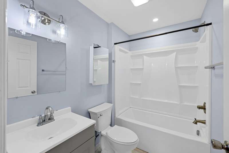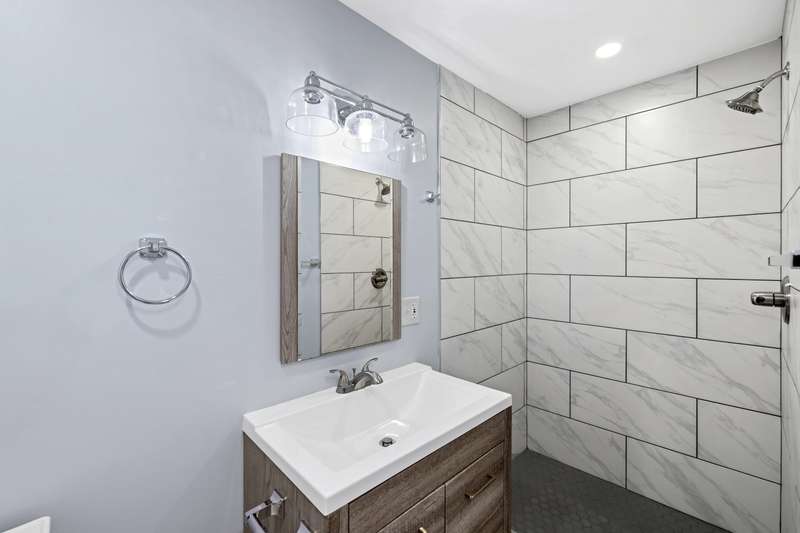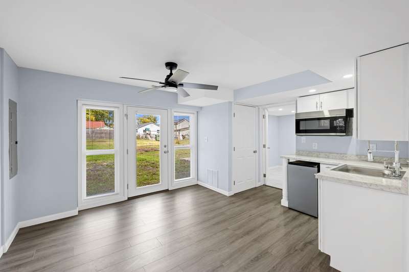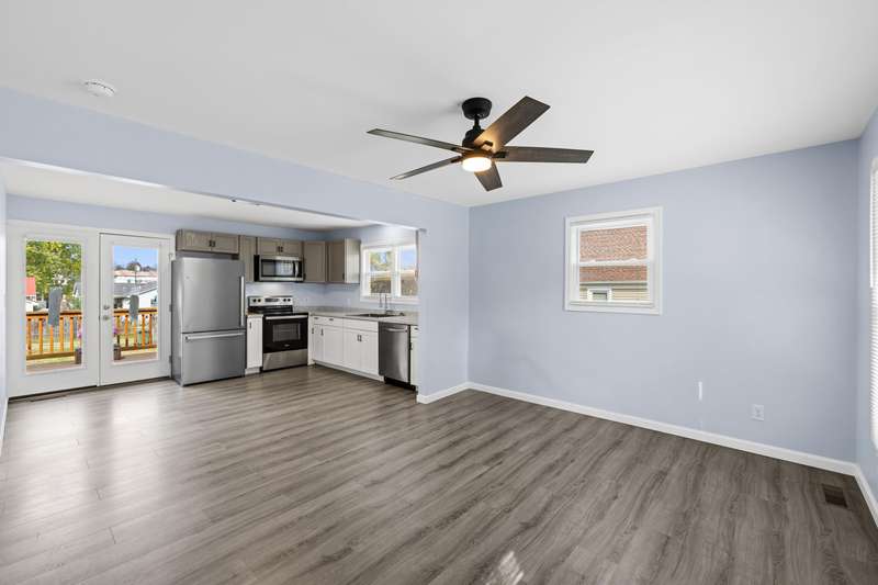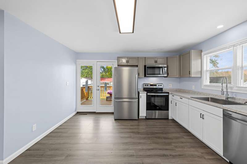 OPEN HOUSE, NOV. 9th, from 1-3:00 pm! Completely renovated and move-in ready, this stunning 5-bedroom, 4-bathroom home with charming blue siding offers the perfect blend of style, comfort, and functionality. The main floor features a bright, open-concept kitchen and living area with elegant finishes and French doors that open onto a spacious deck overlooking the fenced-in backyard—ideal for entertaining or relaxing outdoors. Three generously sized bedrooms and two modern bathrooms, including a primary suite, complete the main level. The fully finished ground level provides exceptional versatility, featuring two additional bedrooms, two full bathrooms, a cozy family room, a wet bar, and a laundry room, making it perfect for guests, extended family, or multi-generational living. Private entries on both levels. Every detail has been thoughtfully updated, combining contemporary comfort with timeless charm.