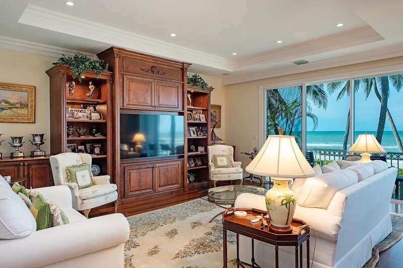 Accessed via a quiet lane, this incredibly unique residence represents the best value in single family beachfront living and provides no shortage of unrivaled scenery through its floor to ceiling windows and terraces. The home, built in 2003, encompasses three bedroom suites, a study, three full bathrooms + a powder bathroom, a private three-floor elevator, wet bar, multiple west-facing terraces, as well as stunning floor-to-ceiling high impact windows and sliding doors that showcase glistening Golf of Mexico views. The master suite spans across the entire top floor and features a Gulf-front study, fitness studio, and sprawling dressing room. Providing the utmost in privacy, the verdant Gulf-side backyard meets the sandy edge of the beach and is further highlighted by a beachside pool and spa. In addition to the copious features found within, this beachfront home is also conveniently close to the chic Fifth Avenue restaurants and boutiques that make living in Naples a true delight.