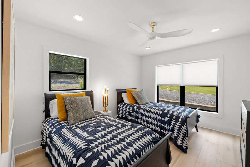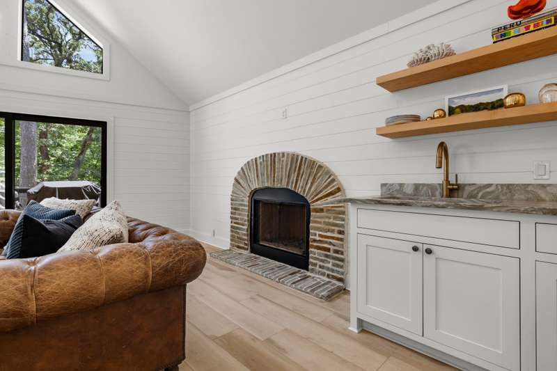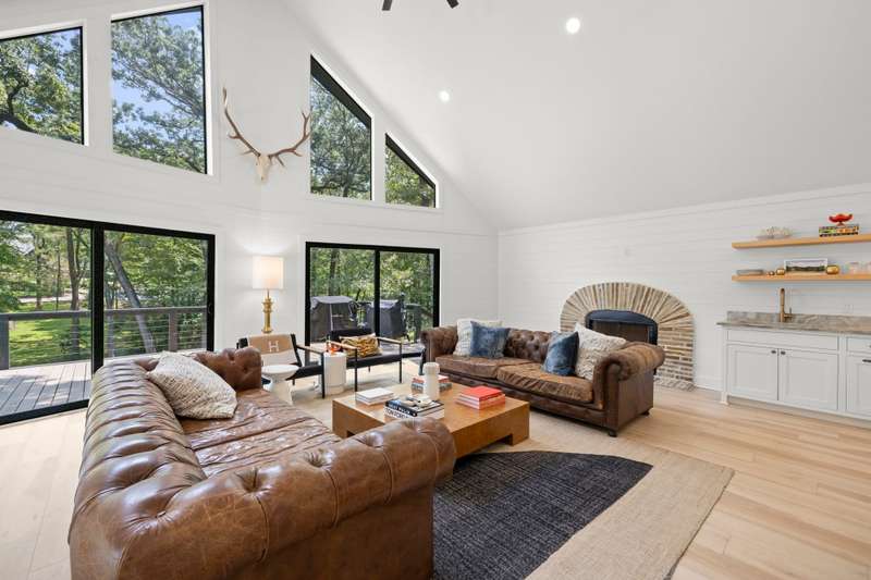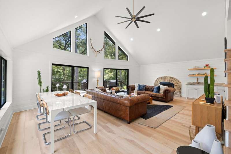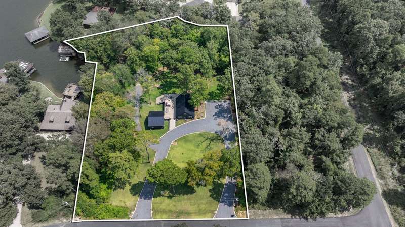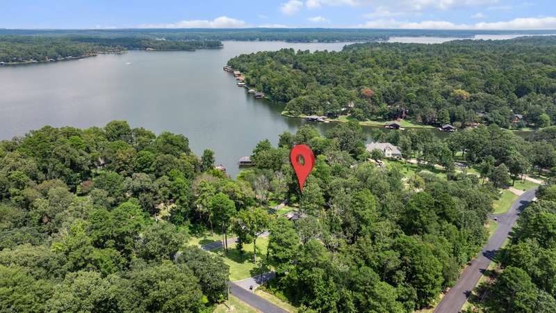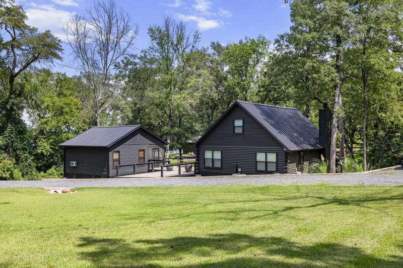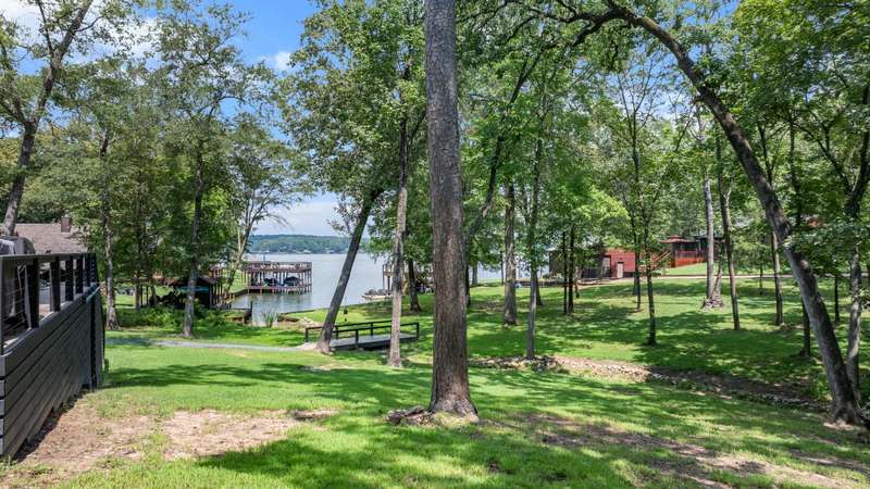 Experience lakeside living at its best in this beautifully remodeled A-frame retreat, perfectly positioned on a scenic 2.06-acre lot. Thoughtfully updated throughout, this home strikes the ideal balance between comfort and style, offering inviting spaces to both entertain and unwind. The open-concept living and dining areas are surrounded by dramatic floor-to-ceiling windows, filling the home with natural light and framing peaceful views of the lake and mature trees. Soaring vaulted ceilings add to the sense of openness, while a wood-burning fireplace creates a warm, welcoming focal point. The guest quarters provide an additional 375 sq. ft. guest quarters, complete with a full bath and a screened-in patio, providing a separate retreat without compromising the main homes footprint. Outdoor living is equally impressive, with an expansive wraparound deck designed for gatherings, relaxation, and evenings by the firepit. A private dock invites endless opportunities for boating, fishing, and lakeside fun. Within the gated community, residents also enjoy access to amenities including a pool, sports court, boat ramp, and more. Whether as a serene weekend escape or a year-round residence, this one-of-a-kind property offers the perfect blend of nature, recreation, and refined lakefront living.