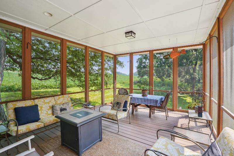 Step into the timeless charm of this beautifully restored 1880s country schoolhouse, thoughtfully updated with a spacious modern addition in 2000 by skilled local craftsmen. Nestled in a quiet, wooded setting & surrounded by open fields & the expansive 1,900-acre Blackhawk Lake Recreational Area, this unique property offers serenity, history, & comfort in equal measure. The addition blends seamlessly with the original structure, providing a 2-car attached garage, generous living space, a cozy screened-in porch, & a welcoming deck perfect for enjoying nature or entertaining. Inside, you will find two versatile living spaces--each with its own kitchen, dining area, bedrooms, and baths -- making it ideal for multi-generational living, guests, or even a vacation rental.