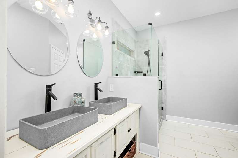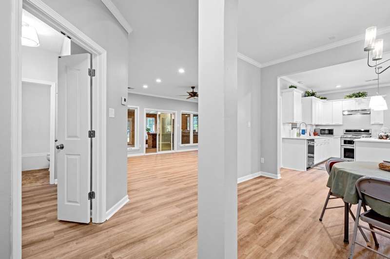 Set on a peaceful 1.01-acre lot, this beautifully renovated 6BR, 3BA home combines the charm of country living with modern convenience. The light-filled interior features new flooring, fresh paint, & stylish finishes throughout. The fully renovated kitchen is both functional & beautiful, w/ new cabinetry, sleek countertops, tile backsplash, stainless steel appliances, & a breakfast bar ideal for casual dining. Enjoy year-round gatherings in the enclosed all-seasons room w/ outdoor kitchen, complete w/ a gas grill, vent hood, sink, mini-fridge, & generous counter space?all overlooking the fenced backyard & above-ground pool. The main-level primary suite provides a relaxing retreat w/ private access to the outdoors, while 2 additional BRs & a full bath complete the downstairs split-floor plan. The upstairs layout is complete with 3BRs, a full BA, & office. A 1-yr Home Warranty is offered. Designed for all stages of life, this home offers flexibility, functionality, and room to grow!