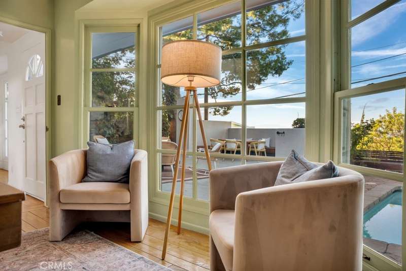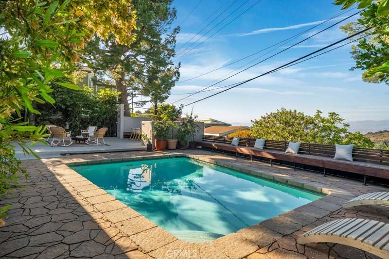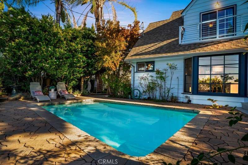 Rare. Iconic. Unforgettable. Nestled on a quiet, private street in legendary Laurel Canyon, this beautifully updated Cape Cod-style pool home blends classic charm with modern upgrades, offering a rare opportunity to own a true Hollywood Hills gem. With 3 bedrooms and 3 bathrooms, this spacious retreat delivers the perfect balance of privacy, character, and comfort for both everyday living and unforgettable entertaining. From the moment you arrive, you’re welcomed by an impressive entertainer’s front yard featuring a sparkling pool, custom bench seating, and a stunning pavered deck—ideal for lounging, hosting guests, or basking in the California sun. A peek of the Hollywood Sign adds an iconic touch to the serene canyon setting. Inside, refinished original hardwood floors and an open, airy layout set the tone for refined yet relaxed living. The formal living room flows effortlessly into a sunlit dining area, which opens to an oversized balcony with sweeping canyon views. The updated kitchen features granite countertops, stainless steel appliances, and a cozy breakfast nook—perfect for casual mornings or evening conversations. The main-level bedroom offers a private ensuite with stylish pebble flooring. Upstairs, the primary suite is a luxurious escape, featuring a spa-inspired bathroom with a custom soaking tub, lava rock steam shower, cedar-lined walk-in closet, and a private balcony. A third bedroom offers generous space and tranquil window views, ideal as a guest room, home office, or creative studio. Step outside to explore a terraced backyard complete with multiple levels and mature fruit trees—perfect for gardening, meditation, or simply enjoying the peaceful hillside landscape. Additional upgrades include a fully paid solar panel system, passive solar pool heating, copper plumbing, an upgraded electrical panel, tankless water heater, dual-pane windows and sliders, and a newer HVAC system. A two-car side-by-side garage completes the package. Ideally located just minutes from the Sunset Strip, Studio City, the Mulholland Tennis Club, scenic hiking trails, and within the sought-after Wonderland School District—this property offers both tranquility and convenience in one of LA’s most iconic neighborhoods. Come see this gem as this home is Priced to Sell! Call me for a private tour.