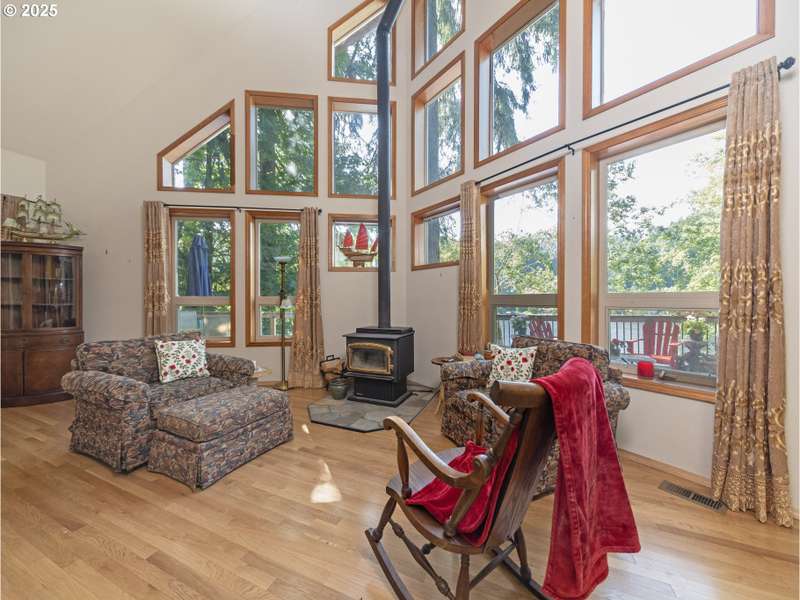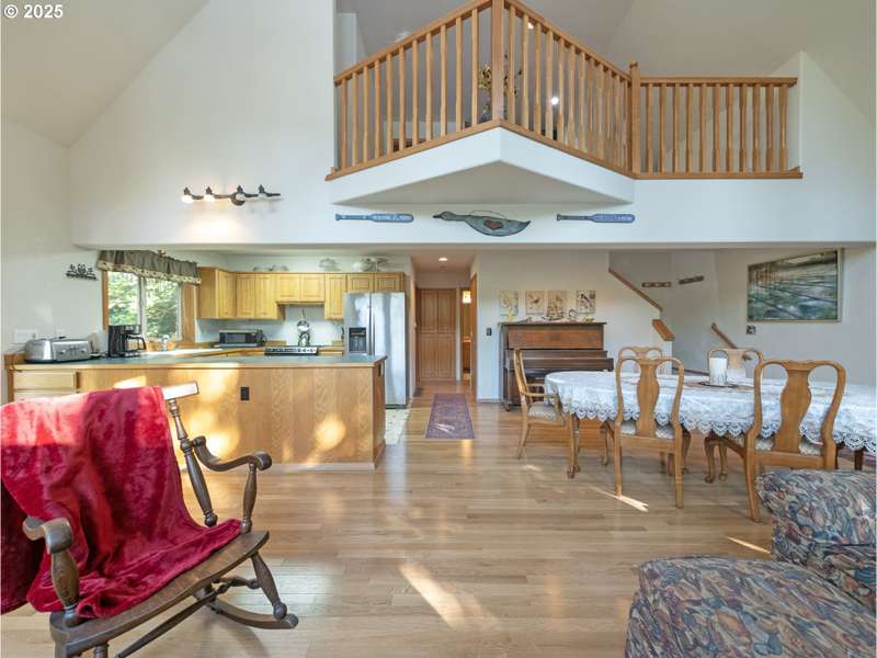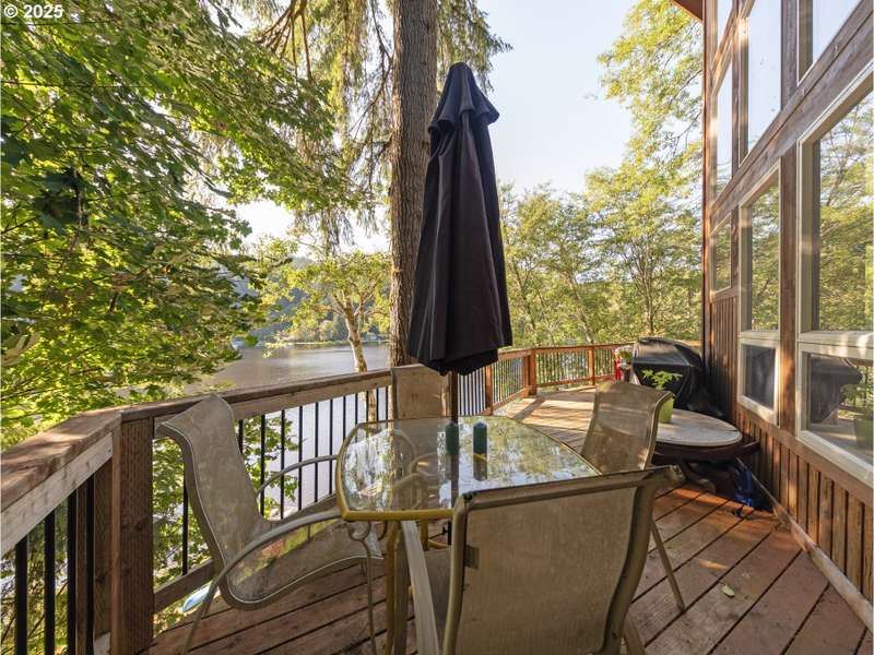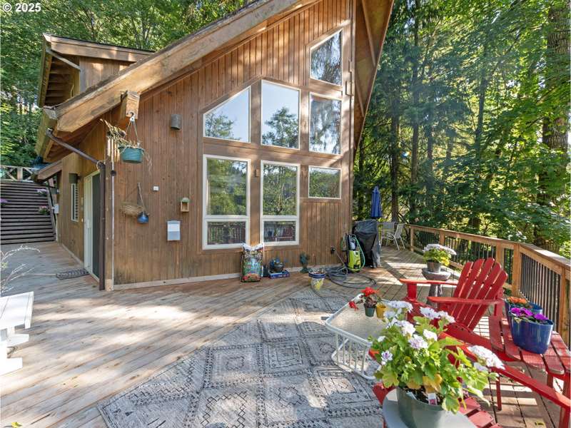 Welcome to your dream getaway — REMAINING LOAN BALANCE IS ASSUMABLE for this a breathtaking lakefront chalet nestled among mature trees with sweeping water views visible from nearly every room. This exceptional home features soaring vaulted ceilings and an abundance of windows, bathing the spacious great room in natural light. A cozy woodstove anchors the open-concept living area, creating a warm, inviting space perfect for relaxing or entertaining. The main level offers two comfortable bedrooms, a full bath, a generous dining area, and a charming kitchen designed for effortless gatherings. Upstairs, you'll find a private master suite and an open loft overlooking the living area — ideal for a reading nook or office. The lower level offers a space to gather to play pool, an additional guest space, or to enjoy the lake from a different view. Additional storage/ crawlspace as well for more options for a fourth level daylight basement to walk right our to the lake! Step outside to expansive wraparound decking where you can enjoy tranquil mornings or host summer barbecues. A private dock provides direct access to the lake for kayaking, fishing, or simply soaking in the serenity. A woodshed and tool shed add convenience and storage. Updates include an expanded and fortified deck and stairs, hardwood floors in the living room, upstairs bedroom and loft and gutter guards/ new roof in 2021. Whether you're looking for a year-round home or a vacation retreat, this one-of-a-kind chalet delivers charm, comfort, and unforgettable lakefront living. Come enjoy life on the lake today!