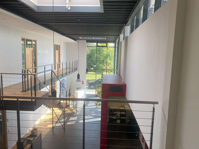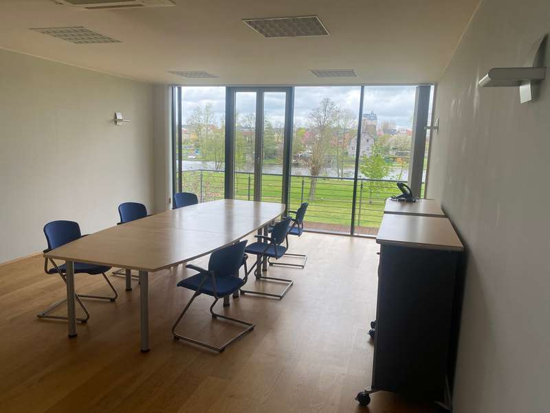 An office building with a water view directly on the Spree is available for rent. The very well-kept commercial property is located directly on the banks of the Fürstenwalder Spree and is surrounded by a park-like outdoor area. A glazed foyer leads into the office building, which offers approx. 385 m² of office space on the first floor and approx. 225 m² on the second floor. All offices are air-conditioned and equipped with floor-to-ceiling windows, parquet flooring and data cabling to the air-conditioned server room. The individual work areas and various ancillary rooms are accessed via a central corridor and are partitioned off by drywall walls. The room structure can be easily adapted. The modern break area with integrated kitchen (dishwasher, refrigerator, stove) and access to the outdoor terrace is located on the first floor. Are you interested? Then we look forward to receiving your inquiry!