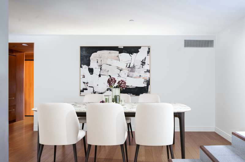 Upon entry, you are greeted with a spacious living room with a pulled-out dining space drenched in natural lighting. Offering even more functionality, almost every inch of the apartment offers an abundance of storage space. For one-bedroom homeowners that is often a necessity. Attached, but still, separate is the kitchen with a top-tier Wolf stove, microwave, and dishwasher.