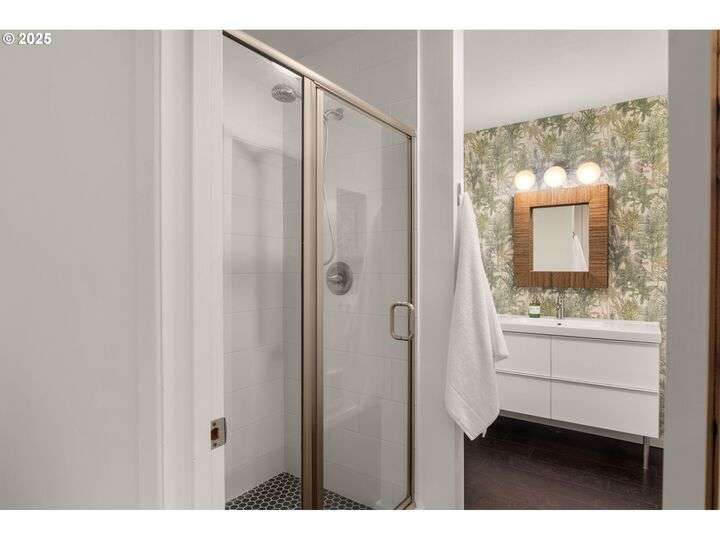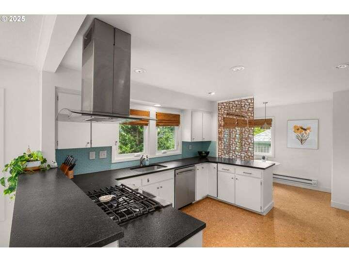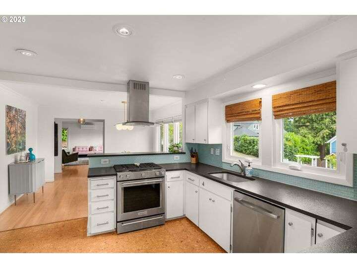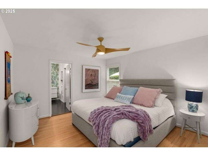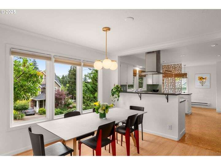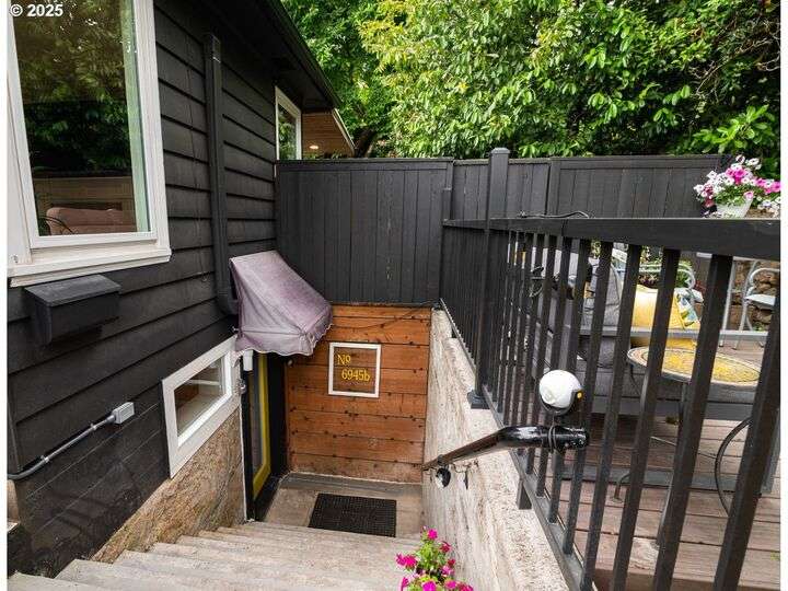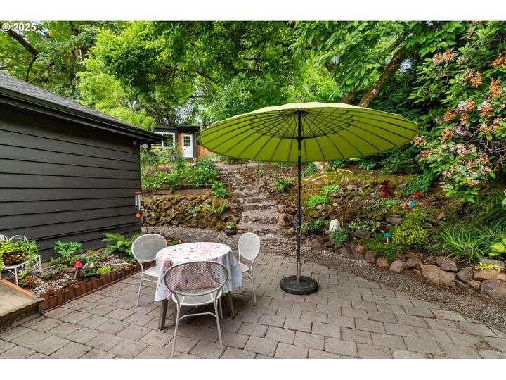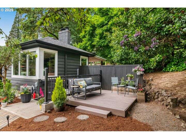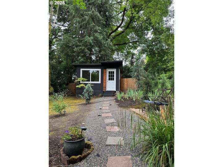 Furnished income ADU, in a highly desired location. With its own separate entrance, it is perfect for a teen, in-laws, or generational living. This mid century modern home exudes character throughout. Natural light floods the front of the home, drawing you towards the windows. Open kitchen makes conversation easy, flanked by the dining area and also a nook. Stainless, gas range, open shelving, pantry. There’s plenty of wall space for your own art gallery! The oversized primary ensuite has 2 closets, including a walk-in, and an attractive bathroom. The second bedroom views the garden and has its own hall bathroom. The living room opens to the covered heated patio, and several entertaining spaces. There’s a casual shed up the path, perfect for writing, sketching, or as a kids play zone. Refinished hardwoods, new mini splits, roof, gutters, and a new front deck. Minutes to vibrant Multnomah Village, and Hillsdale, as well as OHSU, Lewis & Clark Law School. See linked residential ML: 138456533 and please request features sheet from broker.
