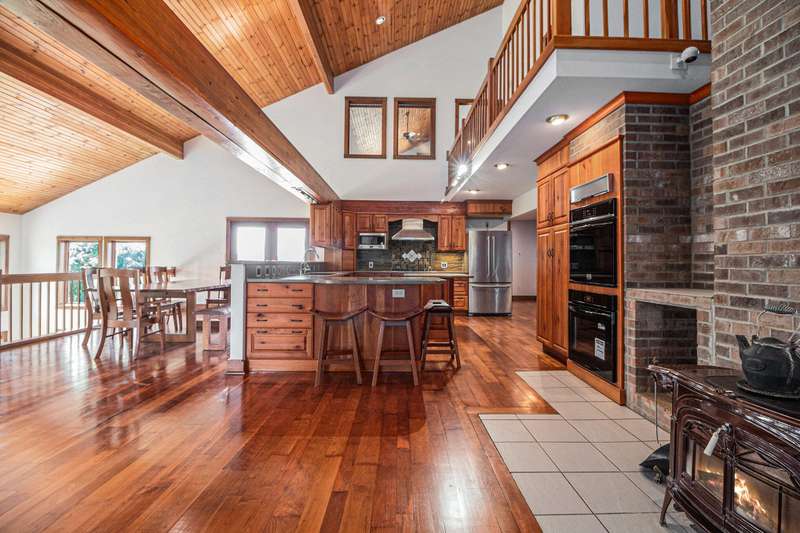 Beautiful Country Estate on almost 28 Acres - Just 10 Minutes from Ann Arbor! A rare opportunity to own a truly special 5,200 SF custom home and farm on one of the most private and picturesque settings in the area. The house is oriented to capture both sunrise and sunset views--enjoy peaceful mornings from the expansive deck or 3-season room, and end the day with sunset walks along the driveway lined with pollinating flowering plants on one side and fruit trees on the other. The home features a spacious open-concept floor plan with cathedral ceilings, American Cherry hardwood floors, a wood burning stove and fireplace. The Cherry kitchen opens to a family room, dining area and main-level flex/craft space. A main floor primary suite includes its own den/living area, bedroom, and full bath The second floor features a spacious primary suite with two walk-in closets, a cedar closet, and a large bathroom with a shower and Jacuzzi tub. A second bedroom also includes its own attached bathroom for added comfort and privacy. The walkout lower level includes a passive solar atrium, home theater, full bathroom and generous built-in bookshelves. Outbuildings include: - Heated workshop with concrete floors and walk-in cooler. - Large pole barn with concrete floor. - Animal barn with 10 free stall stanchions, automatic watering bowls & feed trough.