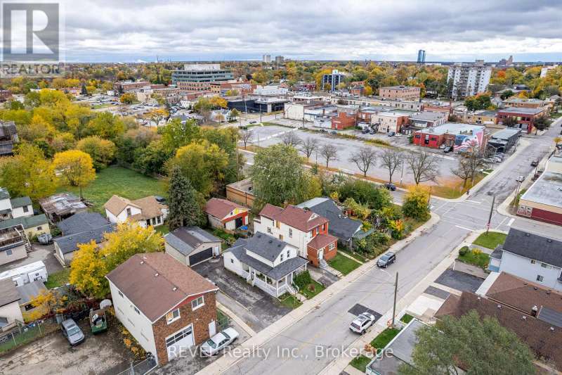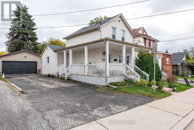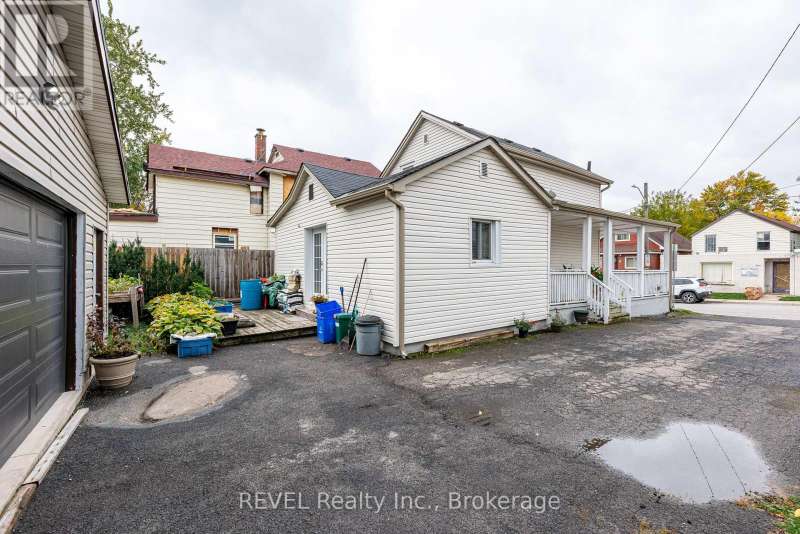 This charming 1.5-storey, 3-bedroom, 2-bath home offers incredible curb appeal and excellent potential. Featuring a welcoming wrap-around porch and a spacious double-car detached garage set back from the street, the property combines character and functionality. Situated just one block from Queen Street and steps from the Bus Terminal, Amtrak, and GO Station, this location is ideal for both residential and commercial use. Enjoy a short walk to the scenic Niagara River, the Gale Centre Arena, and all the attractions of downtown Niagara Falls. Locally loved Lococos grocery store serving the community since 1906is just around the corner. Zoned Central Business, this property allows for a variety of commercial opportunities. Recent updates include a new furnace and vinyl siding (2020), garage roof (2021), and new garage door (2022) and bathroom (id:7434)
