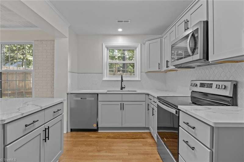 This updated Sherwood ranch with detached garage blends timeless charm with modern upgrades. Recent improvements include a new roof (2024), HVAC system, freshly poured concrete driveway, and privacy fence.The main level offers 3 bedrooms/2 baths, filled with natural light and refinished hardwood floors. The kitchen has been updated with quartz countertops, stainless steel appliances, and soft-close cabinetry.The lower level provides a spacious flex area with new flooring and a separate entranceperfect for a guest suite. Conveniently located to shopping, schools, and highway access.