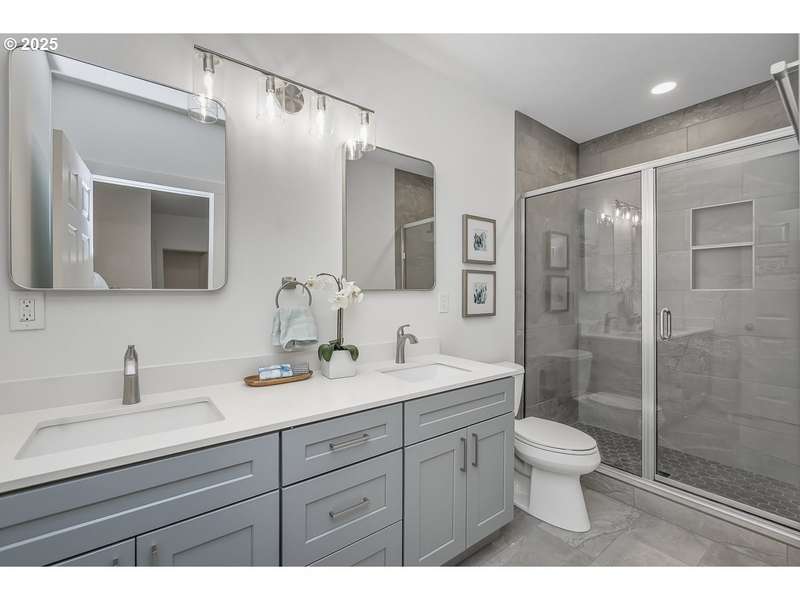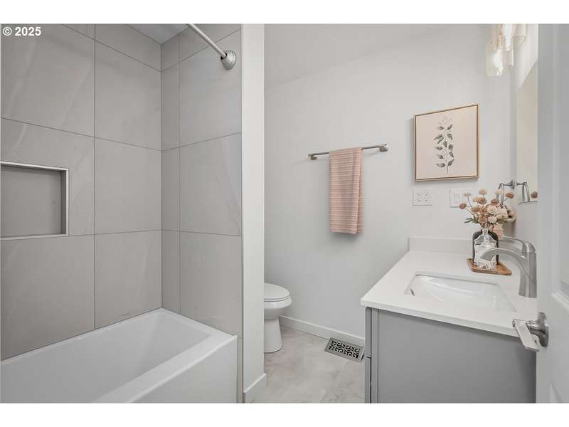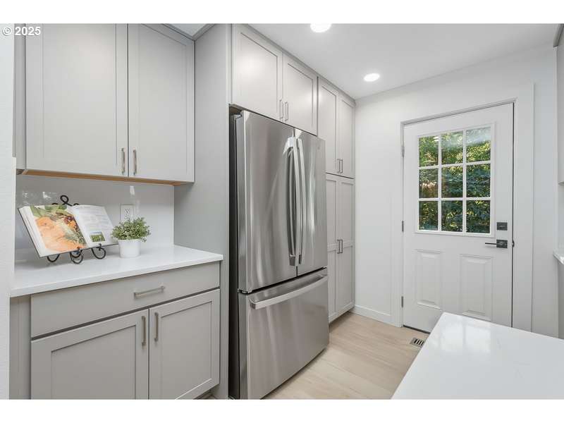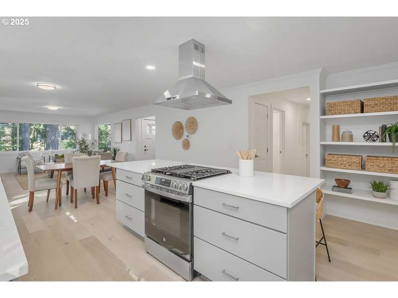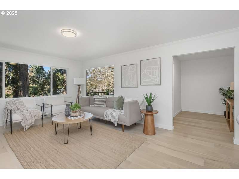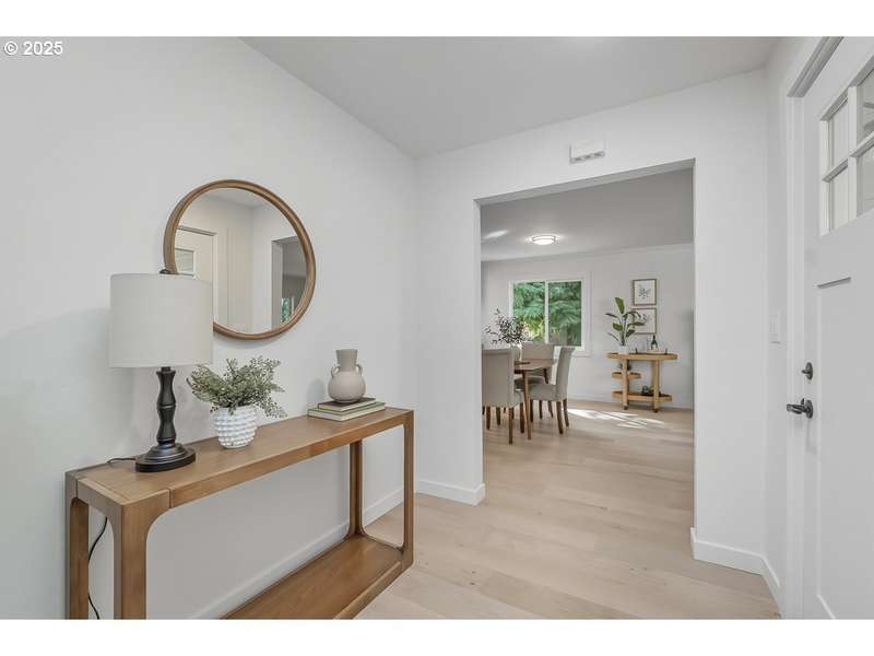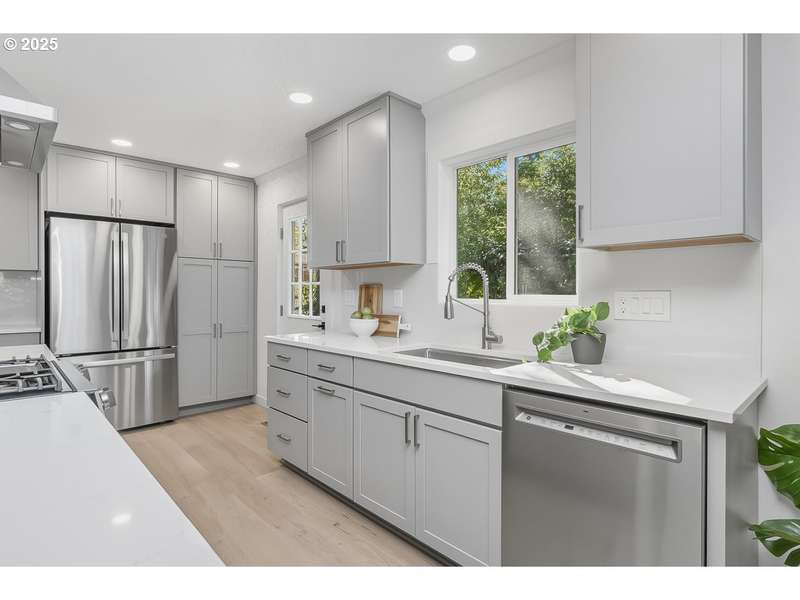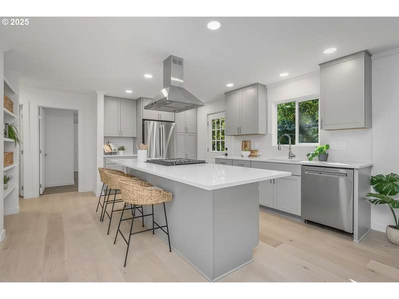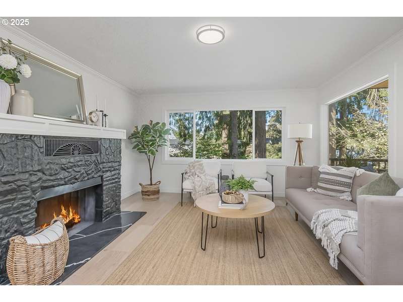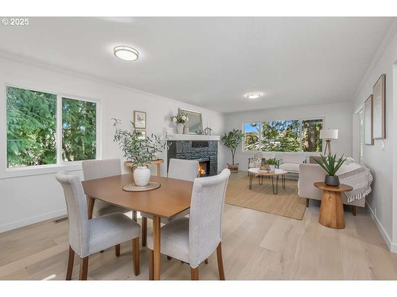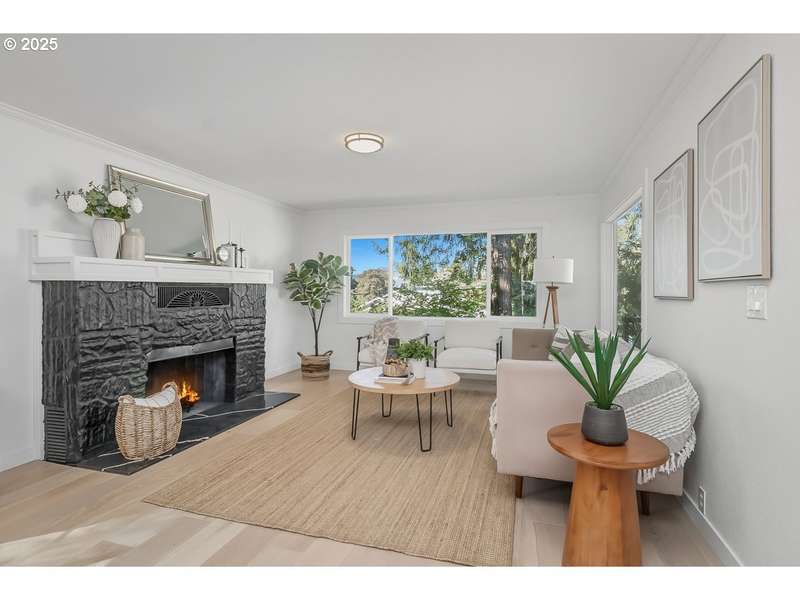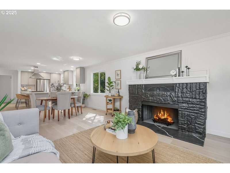 Welcome to 14222 SE Laurie Ave, a fully updated one-level home on a private quarter acre lot set back from the road. The open floor plan features engineered hardwood floors, expansive windows, and a cozy wood-burning fireplace. The chef’s kitchen offers quartz countertops, custom cabinetry, a gas range with stainless steel hood, and a large island with seating that flows into the dining and living spaces.The primary suite includes a walk-in closet and a tiled bathroom with modern finishes. Both bathrooms feature tile floors and tile showers. Outside, a brand-new deck awaits with electrical access for a future hot tub. The oversized two-car garage is fully finished with tall ceilings, providing ample room for storage or projects.With fresh siding, paint, and thoughtful updates throughout, this move-in ready home combines style, comfort, and privacy, less than a mile from the river front, close to parks, shopping, and downtown Portland.