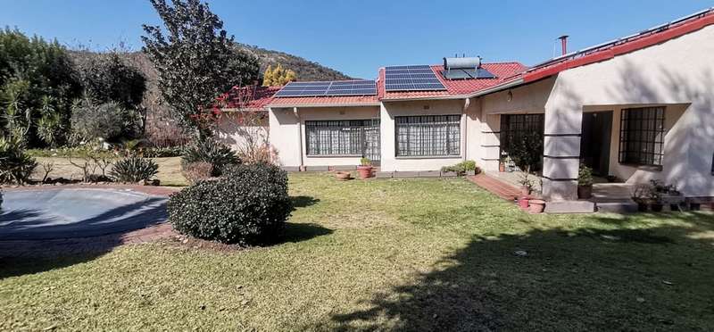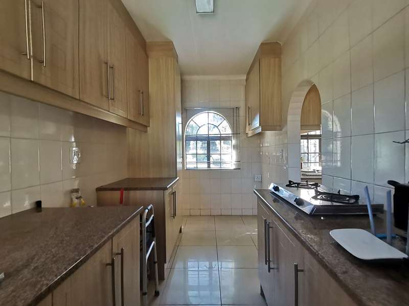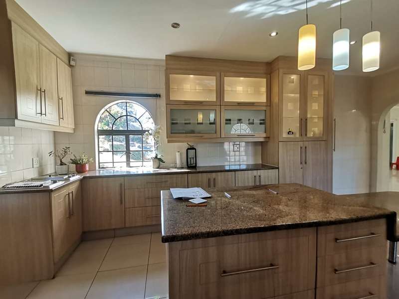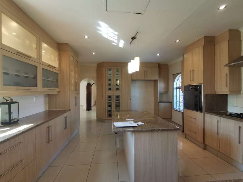 Located in a highly sought-after neighborhood, this stunning 5-bedroom home offers the perfect blend of comfort, luxury, and convenience. Thoughtfully designed for larger families, it provides generous living spaces and all the modern amenities needed for relaxed everyday living and effortless entertaining. A friendly entrance hall leads into a spacious lounge and dining area, a family room with a fireplace, a very spacious and functional kitchen offering ample cupboard and sleek granite counter tops, a built-in barbeque braai, 5 plate gas stove, space for a double door fridge, and a secondary fully functional kitchen adds extra convenience and practicality. Offering 5 spacious and carpeted bedrooms with built-in cupboards The main bedroom en-suite with a walk-in wardrobe and a spacious study that can be easily converted into a bedroom. A spacious downstairs multipurpose room with an en-suite bathroom, that can be easily converted to another bedroom. Outside, enjoy the ultimate outdoor living with a swimming pool and a Lapa in a very spacious landscaped garden perfect for both unwinding and entertaining. A borehole and Jo-Jo tank ensuring a reliable water supply and purified water system. This home is complete with 2 double garages and is well secured and close to all amenities as well...