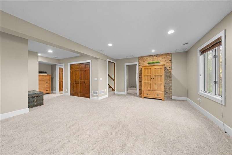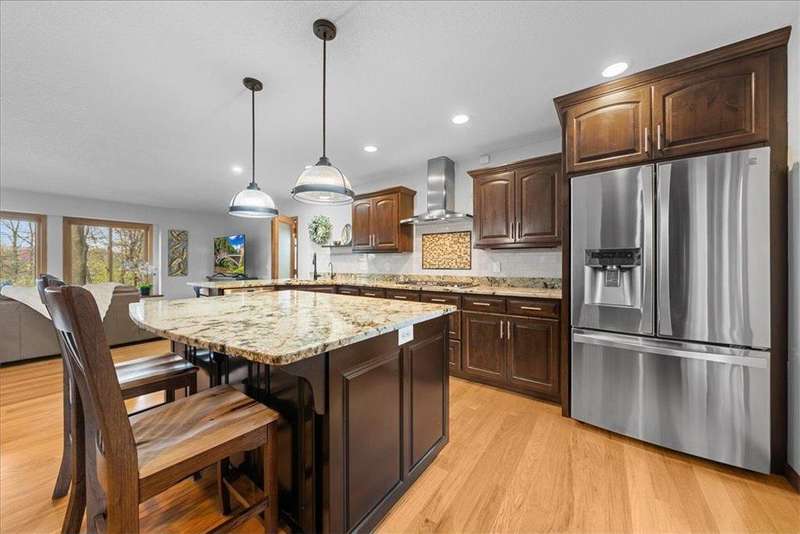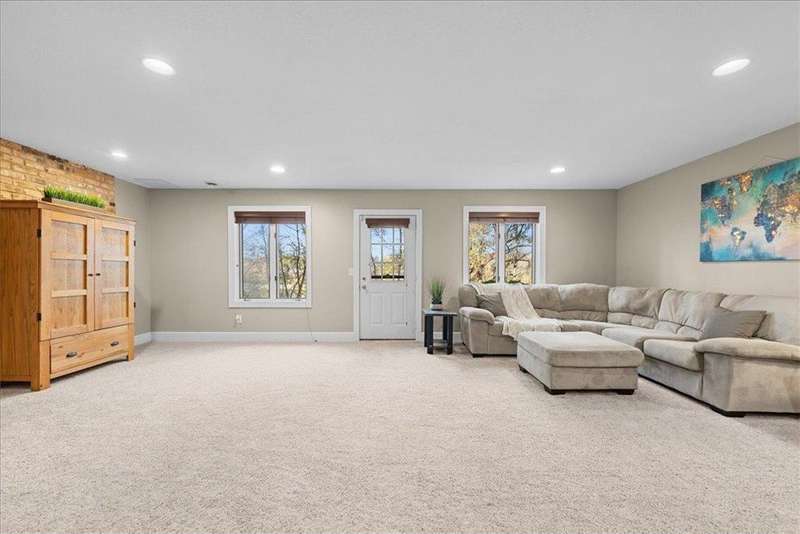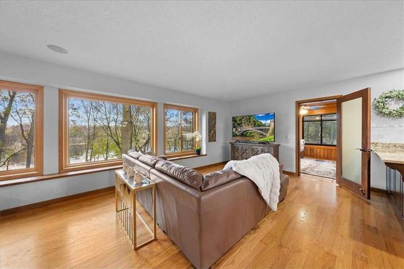 Experience the beauty and tranquility of owning 264 ft of prime river frontage on almost 2 acres! This Executive style 3 bed/3 bath/4 car garage home overlooks a highly sought after area on the Mississippi River. Designed for comfort and convenience with its completely updated main-floor living open-concept layout, spacious primary suite, spa-like bathrooms and picture-perfect views from nearly every room. Upon entry you'll be greeted by the massive open floor plan and stunning views. The bright and completely updated kitchen flows effortlessly into the dining and living areas and IS the Heart of this home featuring double wall ovens, beautiful counter tops, bountiful space and luxury finishes. The main floor includes the primary bedroom w/private ensuite bath and walk-in closet, a cozy woodburning fireplace that adds charm and warmth, a 23x23 sq ft family room addition w/new ductless a/c and an amazing sunroom or office! Within the last 5 yrs updates include a new A/C, Furnace, Garage Heater, Anderson Windows throughout, water treatment system & RO drinking water filter, Well Pump, Sewer grinder pump, Well Pressure tank, Roof(2024), Flooring, Gutter guards, Lighting and a lower-level Renovation. The massive oversized 4 stall garage is insulated, heated, has epoxied floors, workshop and tons of storage. Outside enjoy the beautiful stamped concrete porch, gorgeous deck, Irrigation system, perennial gardens, a horseshoe driveway (newly seal-coated) and a fire pit area that overlooks the river. Two very nice sheds (12x20 & 8x15) w/shelving are included. Unique to this home is a permanent full size RV setup on the side of the property fully equipped with water, electricity & a septic holding tank. Whether you love boating, fishing, or simply relaxing by the water, this home makes every day feel like a getaway!