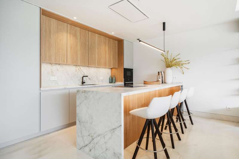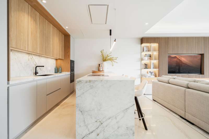 Welcome to Aloha Forest, a new residential development that blends the peace of nature with spectacular views of La Concha Mountain and the Mediterranean Sea. Right in the heart of Nueva Andalucía, just a short distance from Marbella’s Golden Mile, you’ll find 2- and 3-bedroom apartments, as well as penthouses and duplex penthouses, all designed for the Costa del Sol lifestyle. The project is being developed in two phases. Phase I includes 16 homes distributed across two elegant low-rise buildings, offering 2- and 3-bedroom apartments and penthouses. Ground-floor units come with customizable private gardens, first floors enjoy spacious terraces, and penthouses boast private pools. Phase II is set to begin in 2026. This 3-bedroom penthouse features an open-plan living area with a fully equipped kitchen and high-quality finishes. Bedrooms include fitted wardrobes and en-suite bathrooms, decorated in soft, neutral tones. This penthouse stands out with it´s rooftop terrace and private po