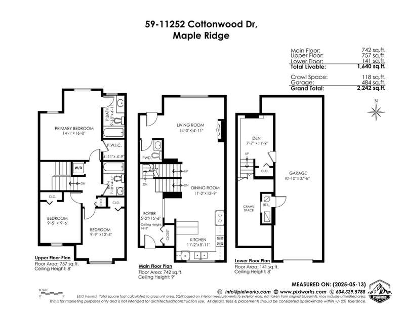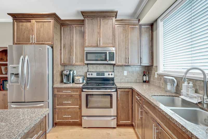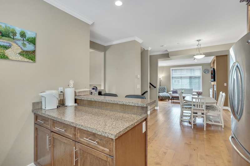 Welcome to Cottonwood Ridge! This is an end unit, 3 beds, 3 bath, and den townhouse. 14’ high ceiling foyer at entrance. 9’ ceiling kitchen, living, dining on main floor with powder room and access to the backyard. South facing maple cabinet kitchen has granite countertop, stainless steel appliances, large window & natural light. Living room w/ gas fireplace & large windows overlooking your private, fully fenced back yard. Large primary bedroom w/ ensuite, walk in closet and two good sized bedrooms are located on the upper floor. Den is on lower floor access to tandem double car garage. Plenty of visitor parking stalls in the complex and a playground. This is a family-oriented neighbourhood close to Thomas Haney Secondary and Kanaka Creek Park. Call today for your private showing!