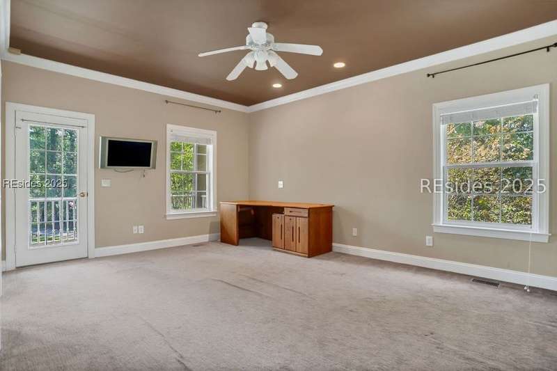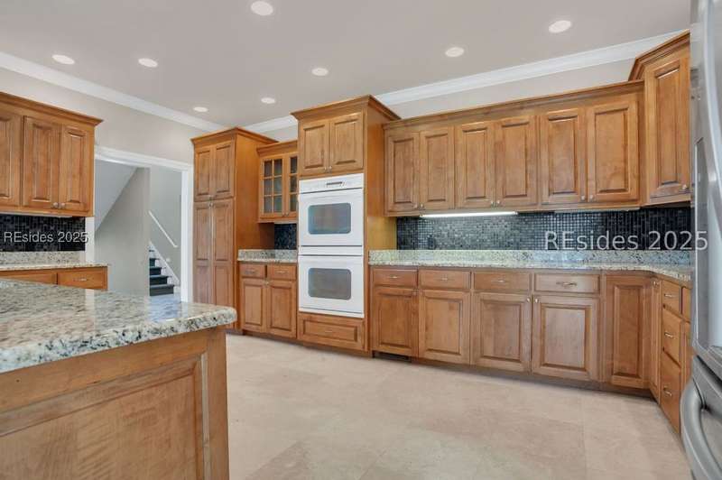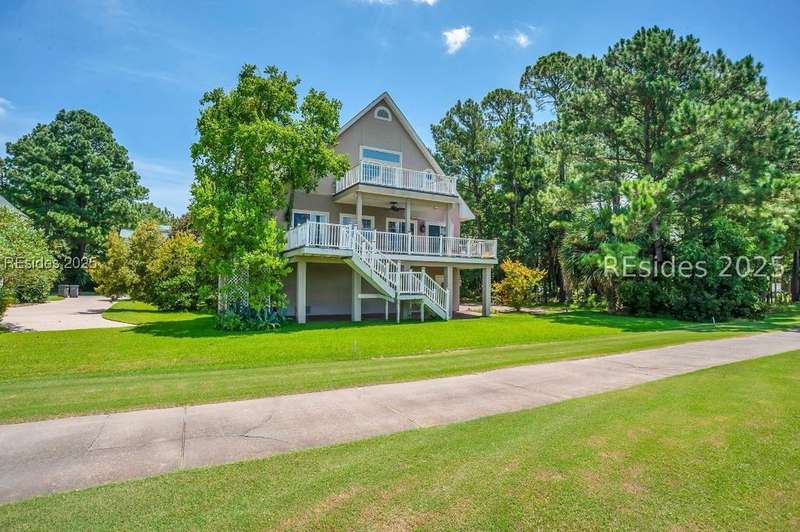 Make this your dream home, unlock its potential. 3 story w/ beautiful golf & marsh views; watch sunrise/sunset from the front or rear 2nd floor porches. 4 beds all W/ ensuite. Plus 2 half baths. Primary suite offers a spa sized bath, 2 walk in closets. Private elevator reaches every level. 4+ car garage for vehicle/storage a dream come true. South Pointe offers low HOA, pool/covered pavilion, playground, green spaces. Quick access to the Pkwy & 278 shopping, dining & entertainment. Before the HHI bridge, a premier location for quick beach access. Borders Old South Golf Links.