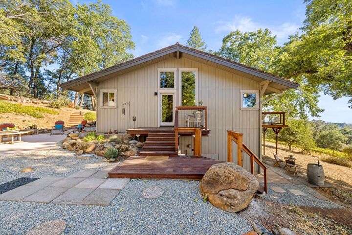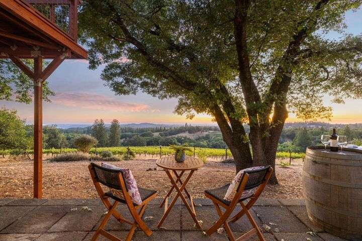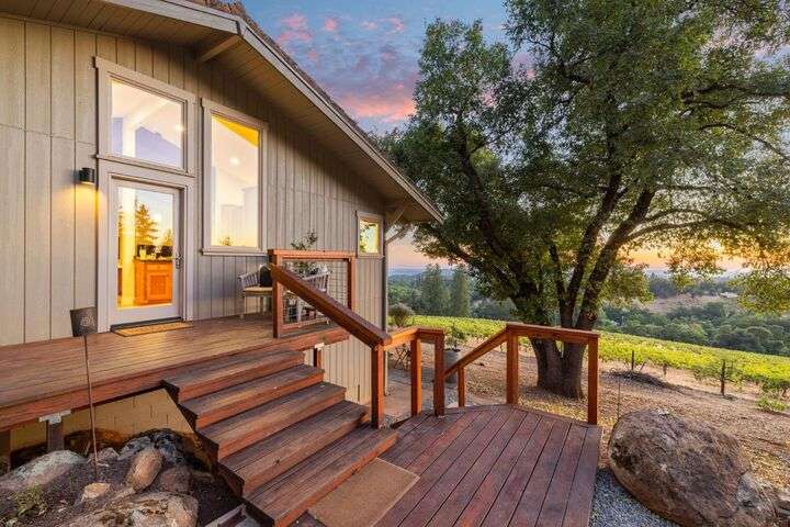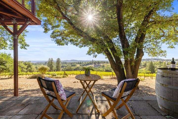 Discover the perfect blend of beauty & contemporary convenience on this remarkable 40-acre estate with an adjoining 23-acre parcel included. Whether you envision a private sanctuary, hobby farm, or boutique vineyard, this versatile property delivers on all fronts. At the heart of the estate lies a remodeled 1,792 sq ft home, where an open, airy layout & carefully curated finishes create an inviting & luxurious atmosphere. Every detail has been thoughtfully updated to enhance both function & style. Step outside & explore the land from an 8 acre producing vineyard to mature walnut trees & a fenced garden area. The property also includes a detached two-car garage, 1800s farmhouse, & a vintage barn, uninhabitable but brimming with potential for restoration. This home is as smart as it is beautiful, with owned solar, two Tesla backup batteries, a newer HVAC unit, whole-house water filtration system & a new integrated generator all working together to ensure comfort & sustainability. For those who cherish wide open skies, panoramic views & a deep connection to the land, this property offers a truly special lifestyle. Whether you're sipping wine from your own vines or simply watching the golden sunsets across the rolling hills, this is more than just a home, it's a way of life.
