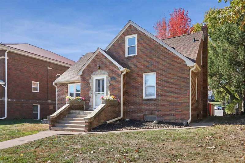 Charming brick 2 story near downtown and schools! Open dining/living room with LVP floors and arched doorways! Large main floor bathroom with soak tub and main floor laundry room with abundant storage. All appliances stay including washer and dryer. Full basement. Enclosed porch and rear concrete patio. Oversized detached 2 car garage plus additional parking pad. New roof, facia & gutters 2024. Water heater 2021. Electric heat units in 2nd floor 2024. Boiler heat 2019.