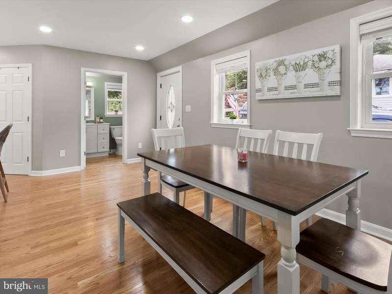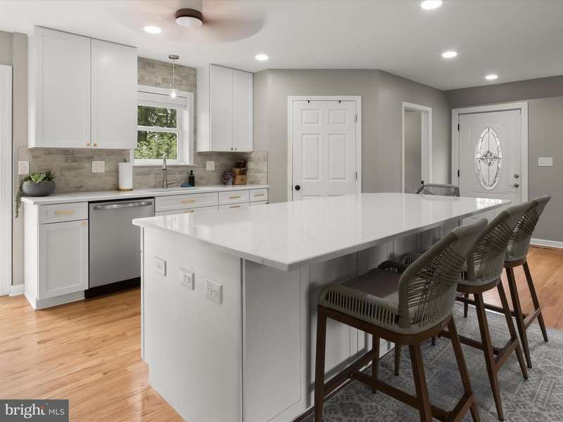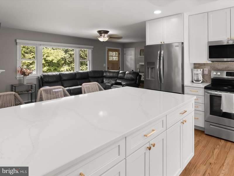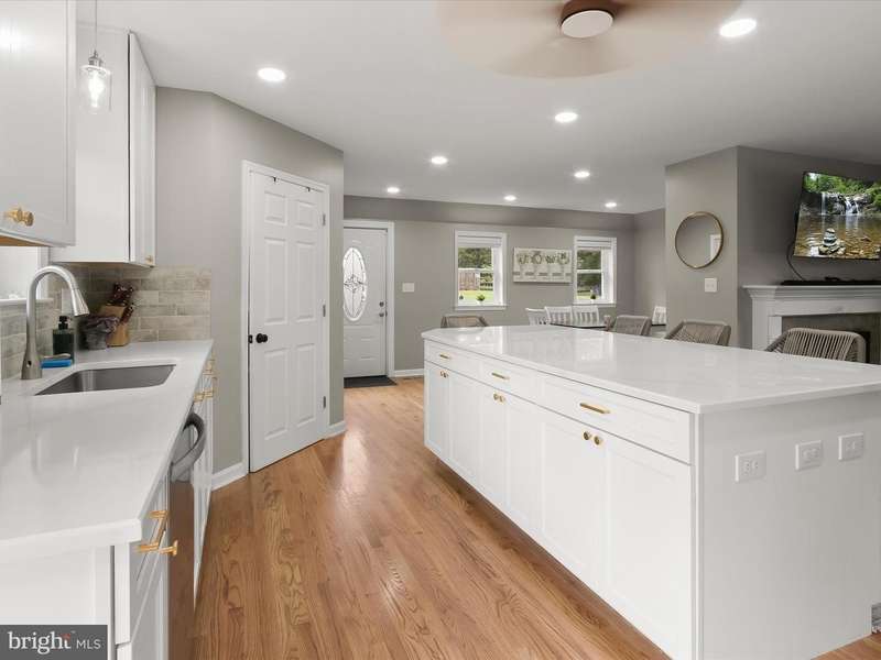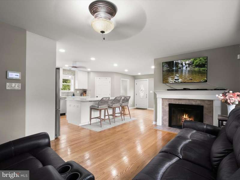 Tucked on a .64-acre lot surrounded by mature evergreens and a graceful willow tree, this beautifully updated rancher blends timeless charm with thoughtful modern upgrades both inside and out. Curb appeal shines with recently updated siding including shake siding, carefully curated landscaping, and a widened driveway redone in 2023, offering a warm welcome and ample parking. Inside, the open-concept main living space is filled with natural light, anchored by a cozy fireplace and picture window in the living room. Rich hardwood floors flow seamlessly into the adjacent dining area and renovated kitchen, where white cabinetry extends to the ceiling and is accented by sleek brass hardware. A spacious island with a breakfast bar, gleaming quartz countertops, stainless steel appliances, and a walk-in pantry complete this stylish and functional culinary space. A powder room near the side entrance enhances convenience, while the main level offers three comfortable bedrooms and a fully renovated hall bath with updated tile flooring, a modern vanity, and a tiled tub/shower surround. The lower level impresses with luxury vinyl plank flooring throughout, a recreation room with an electric fireplace set against a stone accent wall, a fourth bedroom, and a stunning full bath featuring a glass-enclosed walk-in shower. Additional highlights include a mudroom with access to the backyard, a spacious laundry area, and a separate utility room with generous storage. Outdoor living is just as inviting, with a redone deck (2021), a patio for relaxing or entertaining, a sprawling fenced backyard, and a separate enclosed garden area ready for your green thumb. Ideally located, this home offers easy access to nearby shopping, dining, parks, and grocery stores, with Maple Lawn, Columbia, and Savage Mill just minutes away. Nature lovers will enjoy proximity to the Patuxent Research Refuge and Hammond Park, while commuters benefit from quick connections to I-95, MD-32, and Route 29, along with MARC train stations and BWI Airport for added travel convenience.
