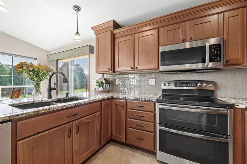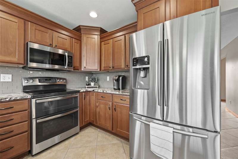 This beautifully maintained home is just waiting for a new owner. The updated kitchen with granite counters stainless appliances and ceramic tiled floors is visual eye candy. Slider to the patio and private backyard. The first floor family room offers a wall of built-ins around the gas fireplace for cozy winter nights. Formal dining & living room too as well as a half bath and laundry room off the garage. Upstairs is home to 4 generous sized bedrooms, a full bath and ensuite bath off the primary bedroom with walk-in shower. In the lower level you'll find a finished rec room with bar area featuring a small refrig & microwave plus an office/flex space for your extra needs. Large unfinished furnace room for storage galore! Attached to the 2 car garage is a storage garage with it's own overhead door. Welcome home!