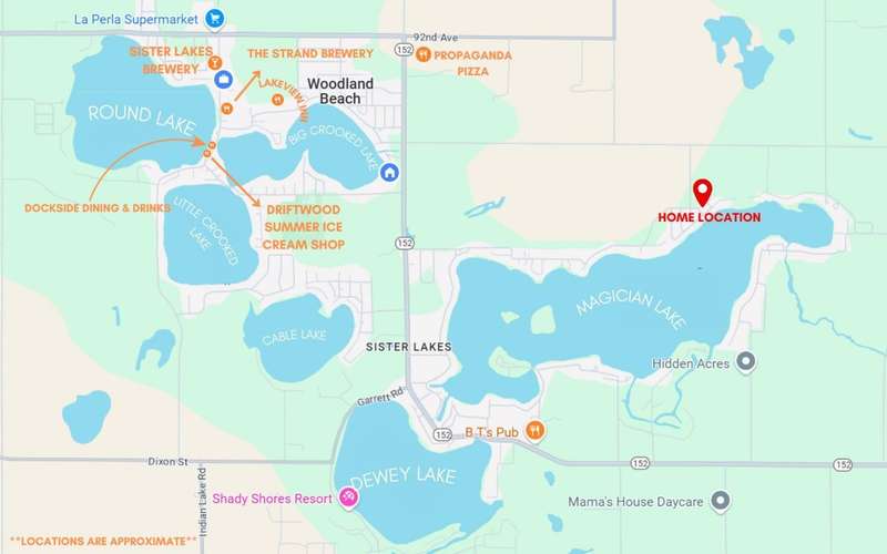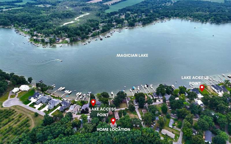 Magician Lake Access home in the wonderful vicinity of Sister Lakes, Michigan. The lake access is conveniently located just across the street. A spacious deck, stamped concrete patio, and lawn are lakeside with a partial lake view. There is also a fire pit to enjoy a roasted marshmallow. This manageable bungalow has been completely updated. The fashionable living room and kitchen are open and include a large picture window and breakfast bar. There is a modern bath with a stand-alone shower. Three bedrooms. Central air and sewer. A garden shed and, of course, cute flower boxes below the windows. This affordable home offers access to Magician Lakes all-sport amenities. It is fun in the sun! Magician Lake is a 528 acre premier all sport lake in the resort area of Sister Lakes, Michigan. The Lake Life is fabulous, but Sister Lakes has much more to offer. Taste the freshest produce from the local produce stands. Sample beers at our new breweries. Take a wine tour. SW Michigan offers 30 different venues. Great golf courses are just around the corner. Winter enjoyment, too, with miles of snowmobile trails and ice fishing. Sister Lakes is less than two hours from Chicago and just over 30 minutes from Notre Dame.