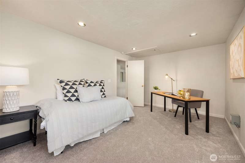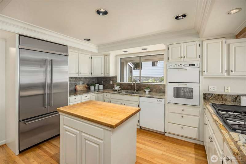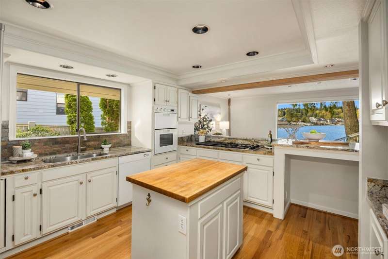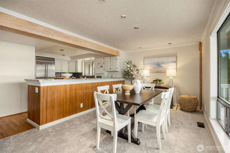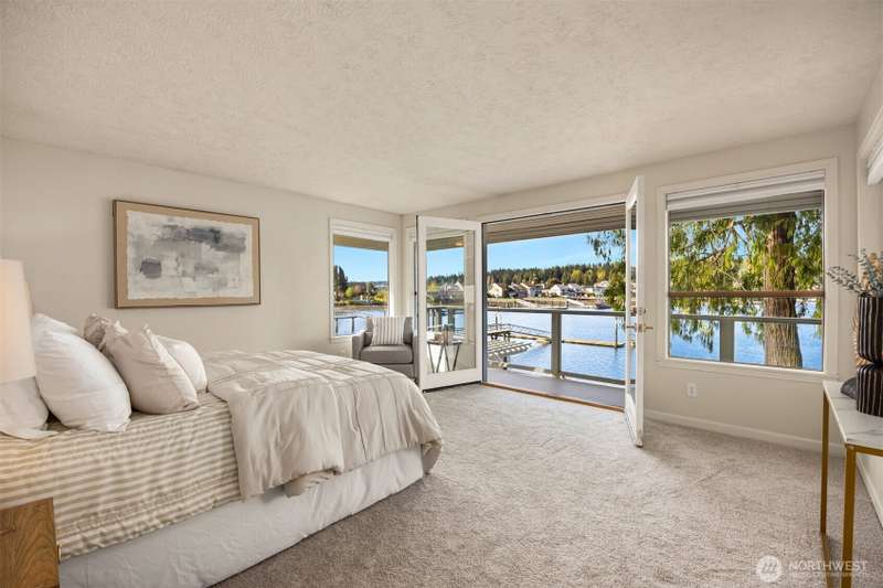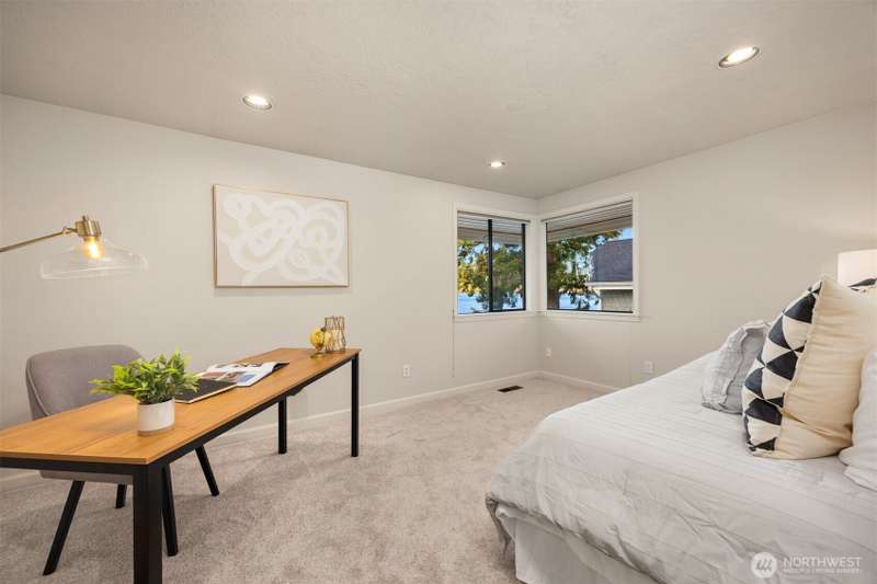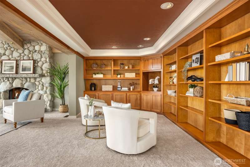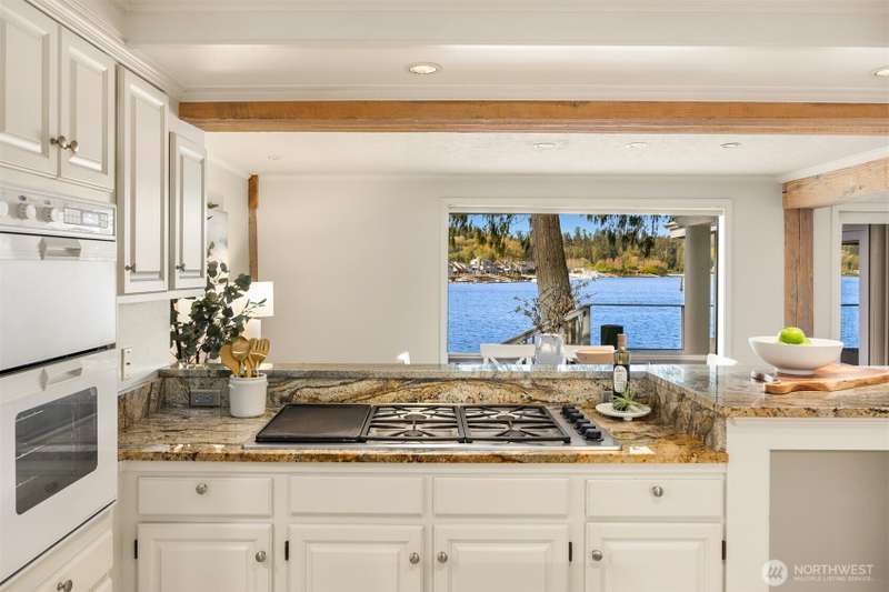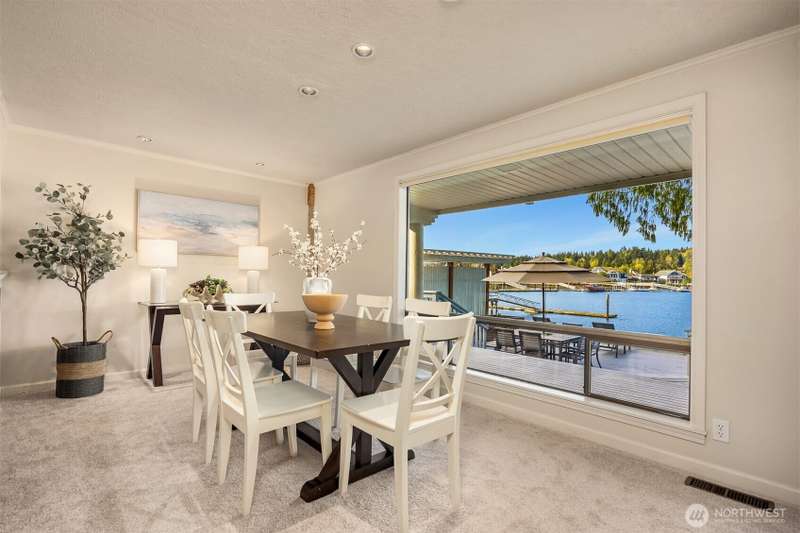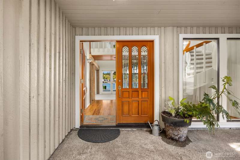 Discover a low bank waterfront gem in Indianola, where tranquility awaits on 68' of sandy beach. This home's main level offers spectacular views of Miller Bay & its abundant wildlife. Enjoy the whitewashed, oversized timbers & massive granite & river rock fireplace in the grand living room. The living room, library, dining area & kitchen all open to an expansive waterside deck, perfect for year-round entertaining. Upstairs, you will love the grand primary suite with a new balcony/deck, walk-in closet & oversized en-suite. Another bedroom & office adds practicality. Swim, paddle board, fish, & boat from your own slice of paradise. This vibrant neighborhood hosts social activities & community events like the Strawberry Festival year round.