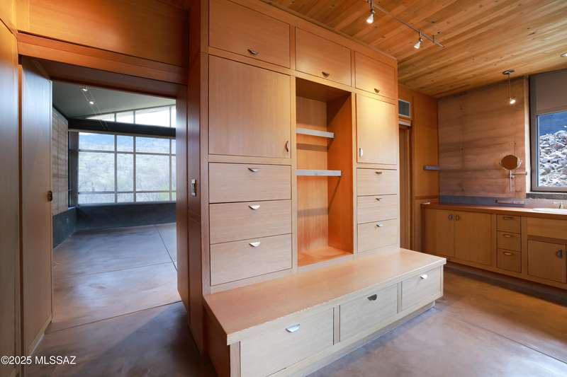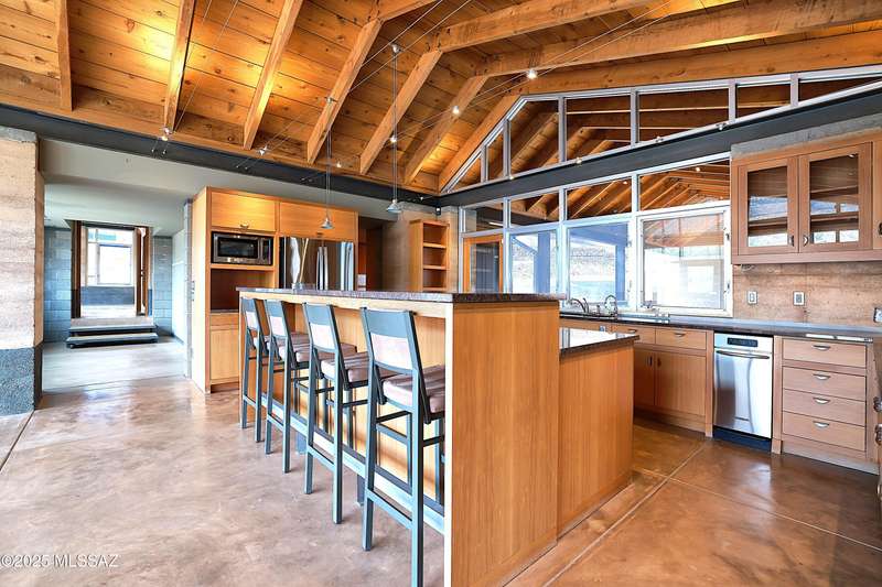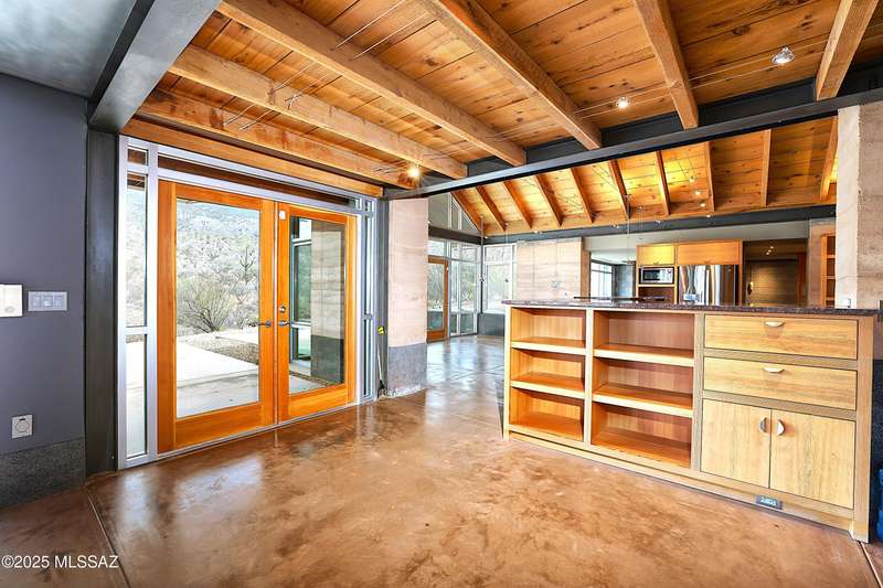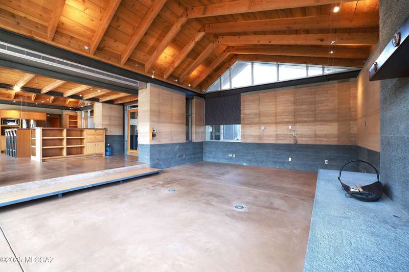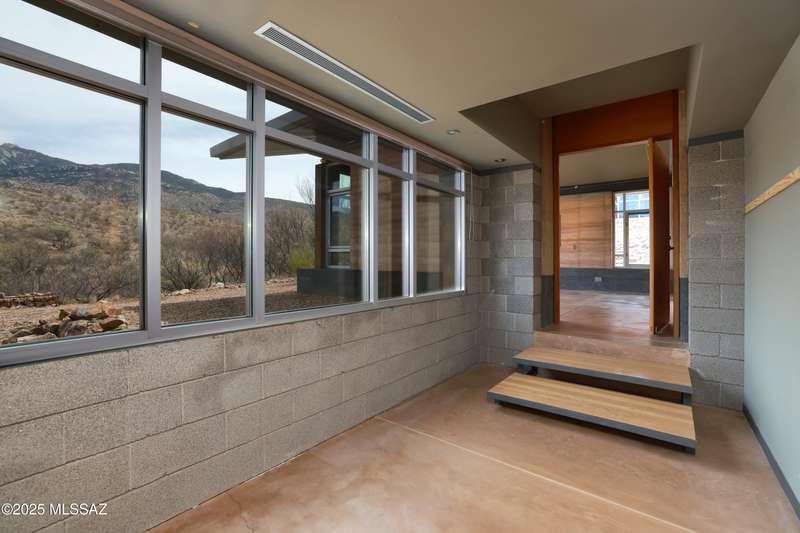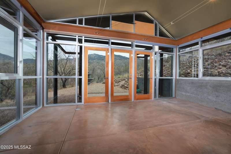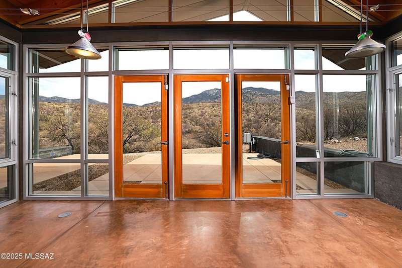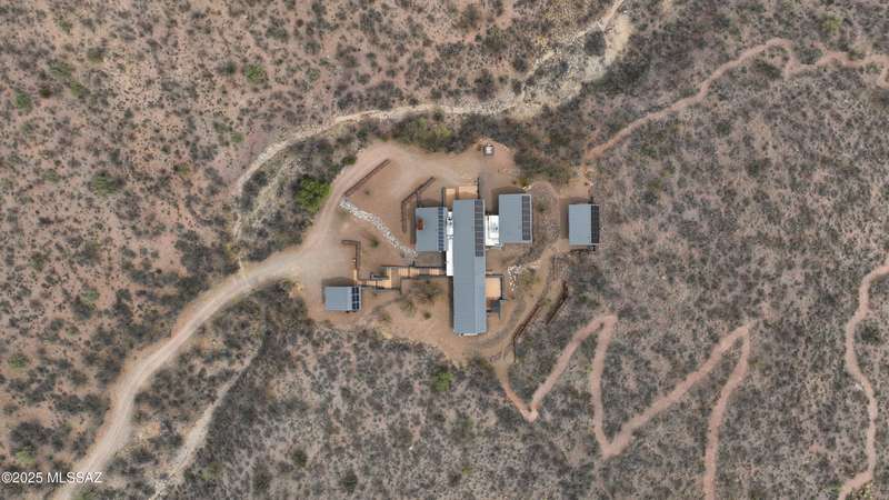 Welcome to this one of a kind compound on over 47 private acres w/spectacular views. Built to last with rammed earth & lava-crete construction designed for thermal mass w/commercial windows & doors, this home features beamed ceilings, metal roofs, underground wine cellar & a 1-mi. walking trail on the land. Spacious living area w/walls of windows framing the views, striking FP, modern kitchen w/lg island, breakfast bar & sizable dining area. Concrete flrs thruout. Primary Suite w/more views & ensuite bath. Gst Qtrs connects by a lg covered breezeway & features 2 bdrms & full bath. Terrific outdoor sauna. Detached studio w/half bath ideal for ofc/gym. Located in the gated X9 Ranch commty, it's the perfect place to get away from it all & immerse yourself in the beautiful Sonoran Desert.