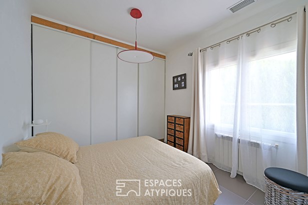 Outside, the landscaped garden reveals a green and private atmosphere. A wooden terrace unfolds around a recent swimming pool, facing south and perfectly integrated into its environment.