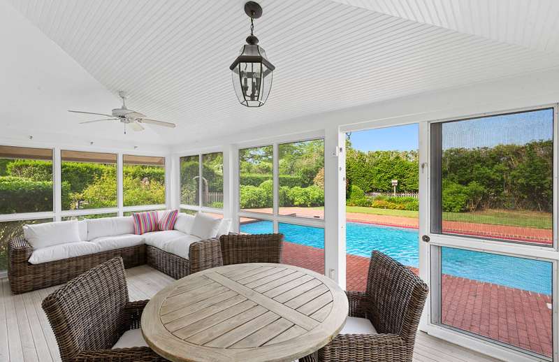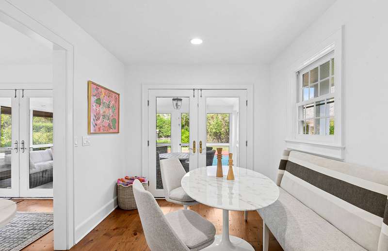 Rental Registry: BP240078. First time on the market, located just moments from Sagg Main Beach and the heart of Bridgehampton Village, this classic cedar-shake traditional offers the ideal summer or year-round escape. Sited on a generous 0.92-acre lot, this 3,220± square foot home features 4 spacious bedrooms and 3 full baths, blending timeless Hamptons elegance with modern comfort. The house is newly updated with all new furnishings. The sun-drenched living room boasts high ceilings and a wood-burning fireplace, creating a warm and inviting space for relaxing or entertaining. A nice dining room with French doors opens to a charming screened-in porch-perfect for breezy, poolside meals. The open-concept kitchen includes a separate breakfast area and flows easily into the home's social spaces. Vaulted ceilings in the bedrooms enhance the airy, tranquil feel of each private retreat. Outside, enjoy a beautifully landscaped setting complete with a heated gunite pool, a surrounding brick patio, and a well-appointed pool house for added convenience. Set south of the highway in one of the most desirable locations in the Hamptons, this property offers both privacy and proximity-just minutes to ocean beaches, luxury shopping, fine dining, and all the amenities of village life.