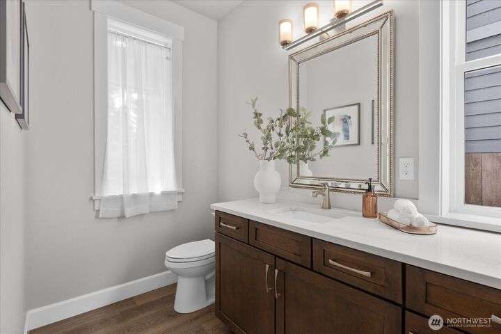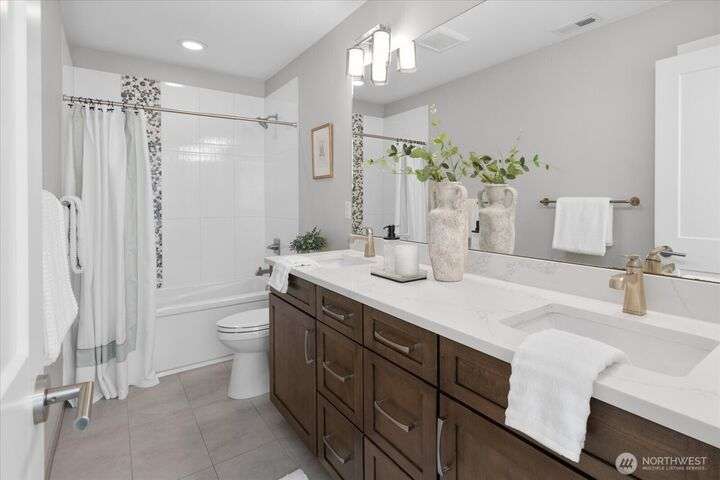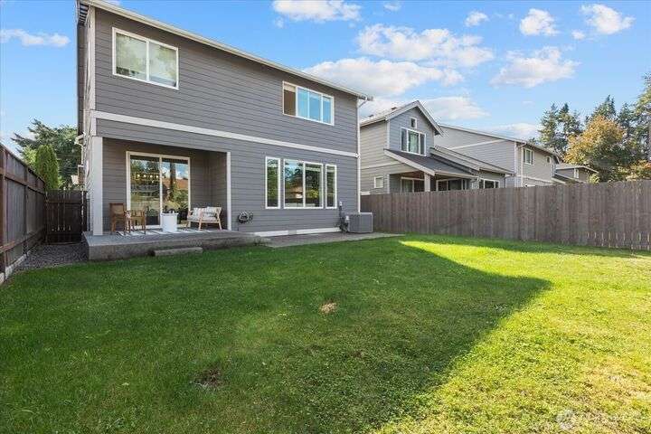 Modern luxury meets thoughtful design in this beautifully detailed home with an open great room layout. Upstairs you’ll find 4 bedrooms plus a versatile bonus room, while the main floor offers a private office/guest room and a spacious ¾ bath. The chef’s kitchen features quartz counters, an oversized island, large pantry, and seamless flow to the dining and living areas. Retreat to the king-sized primary suite with spa-inspired bath, heated floors, and a generous walk-in closet. Additional highlights include tiled baths with quartz finishes, luxury plank vinyl flooring, a covered patio, and a fully fenced, landscaped yard. Conveniently located minutes from the light rail, adjacent to Forest Crest Tennis Club and nearby parks.