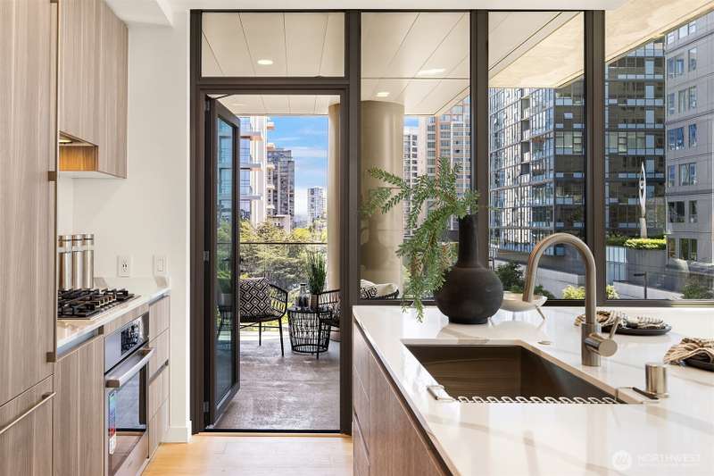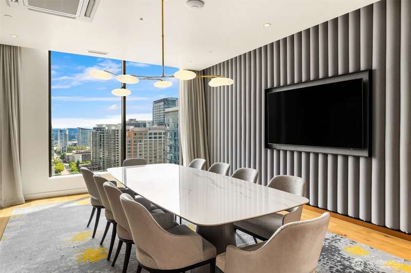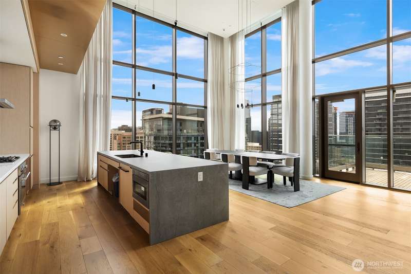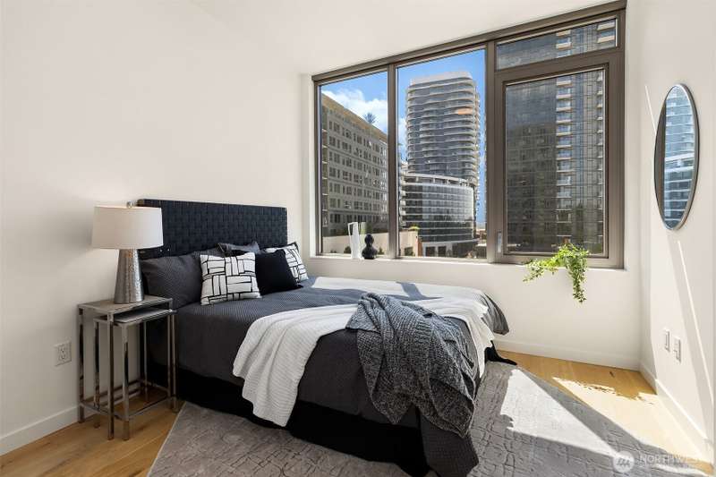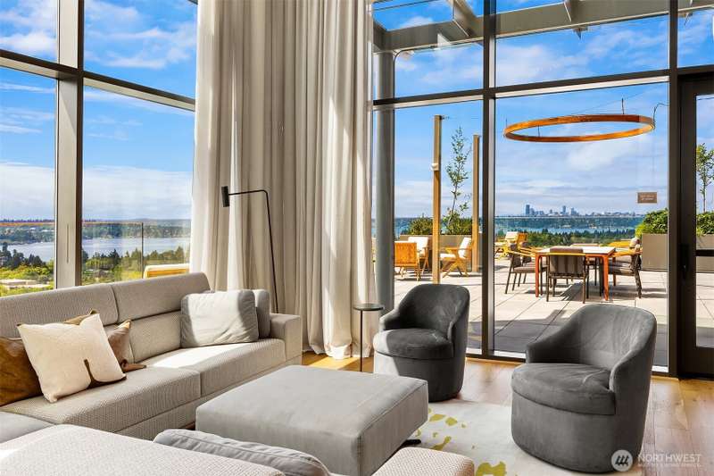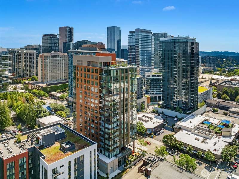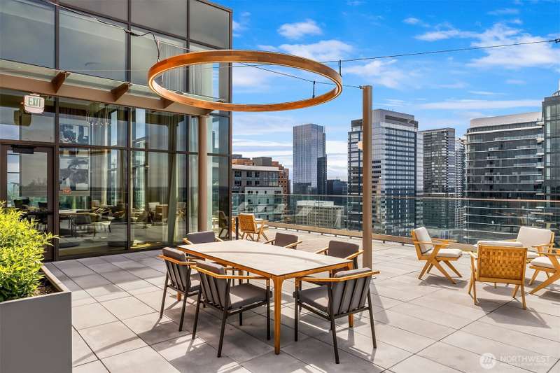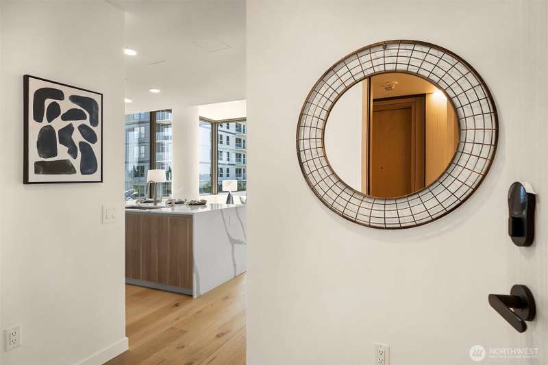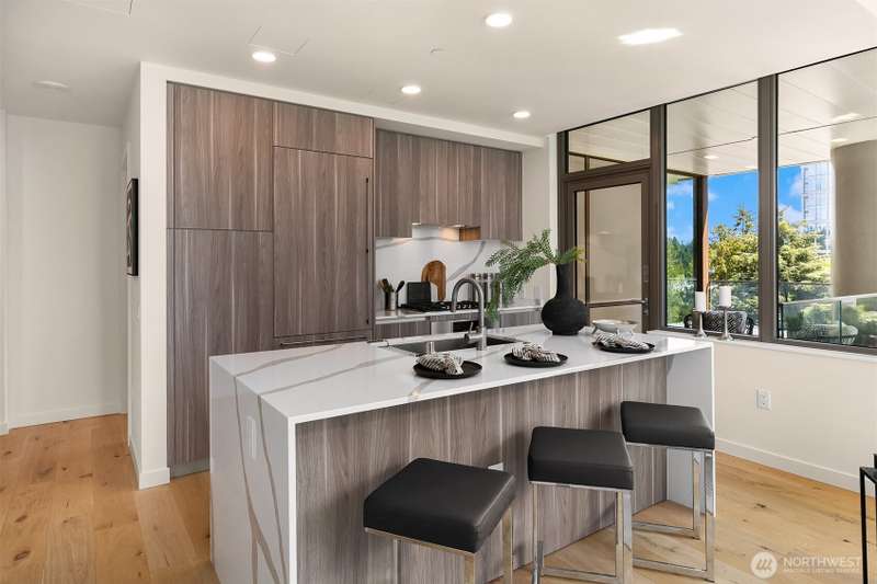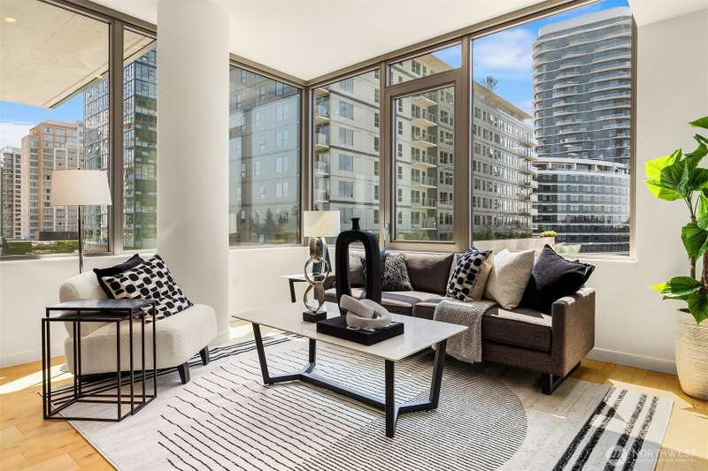 Experience vibrant city living in the heart of Bellevue’s Town Center. This southeast corner 2-bedroom residence at Mari is filled with natural light and features a spacious private patio with sweeping city views—perfect for relaxing or entertaining. Inside, enjoy elegant finishes including custom kitchen cabinetry, wood-paneled appliances, quartz countertops, high ceilings, and wide-plank hardwood floors throughout. Keyless Latch entry adds modern convenience. Amenities include full-service concierge, fitness center, yoga studio, dog run/wash, and the SkyClub with indoor dining and outdoor lounge areas overlooking the city. Steps to Bellevue’s finest shopping and dining.
