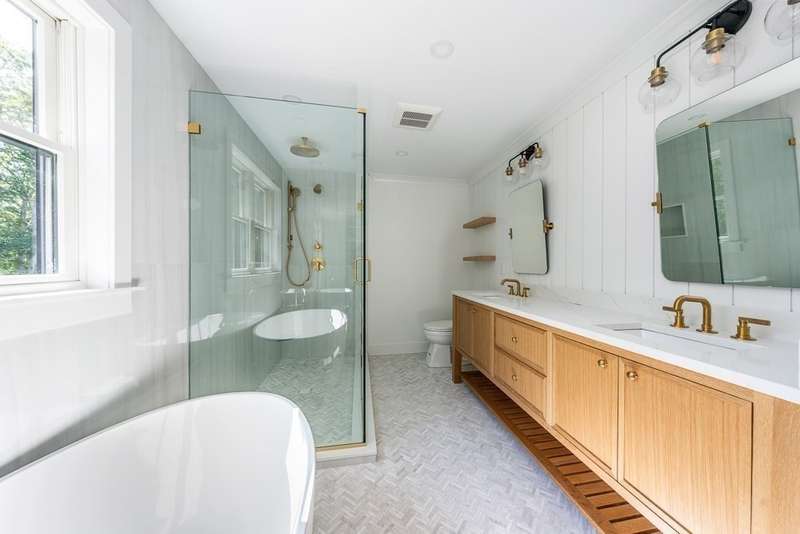 Stunning and completely renovated farmhouse style home, rebuilt from the studs out with a significant addition, resulting in a spacious and luxurious living space. The open living and kitchen area is perfect for gatherings and ease of living, with white pine floors that add to the open feel. The kitchen is a chef's dream, with an abundance of natural light and an airy feel. High-end cabinets and a large quartz center island make meal prep and entertaining a breeze. The perfect blend of form and function, this kitchen is sure to impress. Upstairs, 2 gracious size bedrooms, including a spa-like ensuite that's perfect for unwinding. Laundry is conveniently located on the1st floor, and a large entry mudroom provides ample storage and could easily be converted into an additional living space or play area. The property has been completely transformed, with a significant addition that has added more space and functionality to the home.