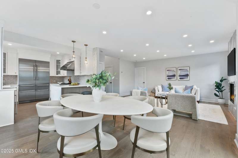 Stunning Newly Built 4-Bedroom Home Near Downtown Greenwich. Experience modern luxury in this exquisite home, one of just two single-family residences in a Planned Unit Development. The open-concept gourmet kitchen seamlessly connects to a spacious deck and private yard, perfect for entertaining or relaxation. The first-floor primary suite boasts a spa-inspired bathroom, a large walk-in closet, and direct deck access. A separate laundry room and high ceilings enhance the home's airy feel. Upstairs, three additional bedrooms offer comfort for family or guests. The finished lower level is versatile, ideal for a home office, gym, or playroom. With a detached garage and parking, plus a prime location minutes from Metro-North, restaurants, and shops, enjoy a sophisticated urban lifestyle.